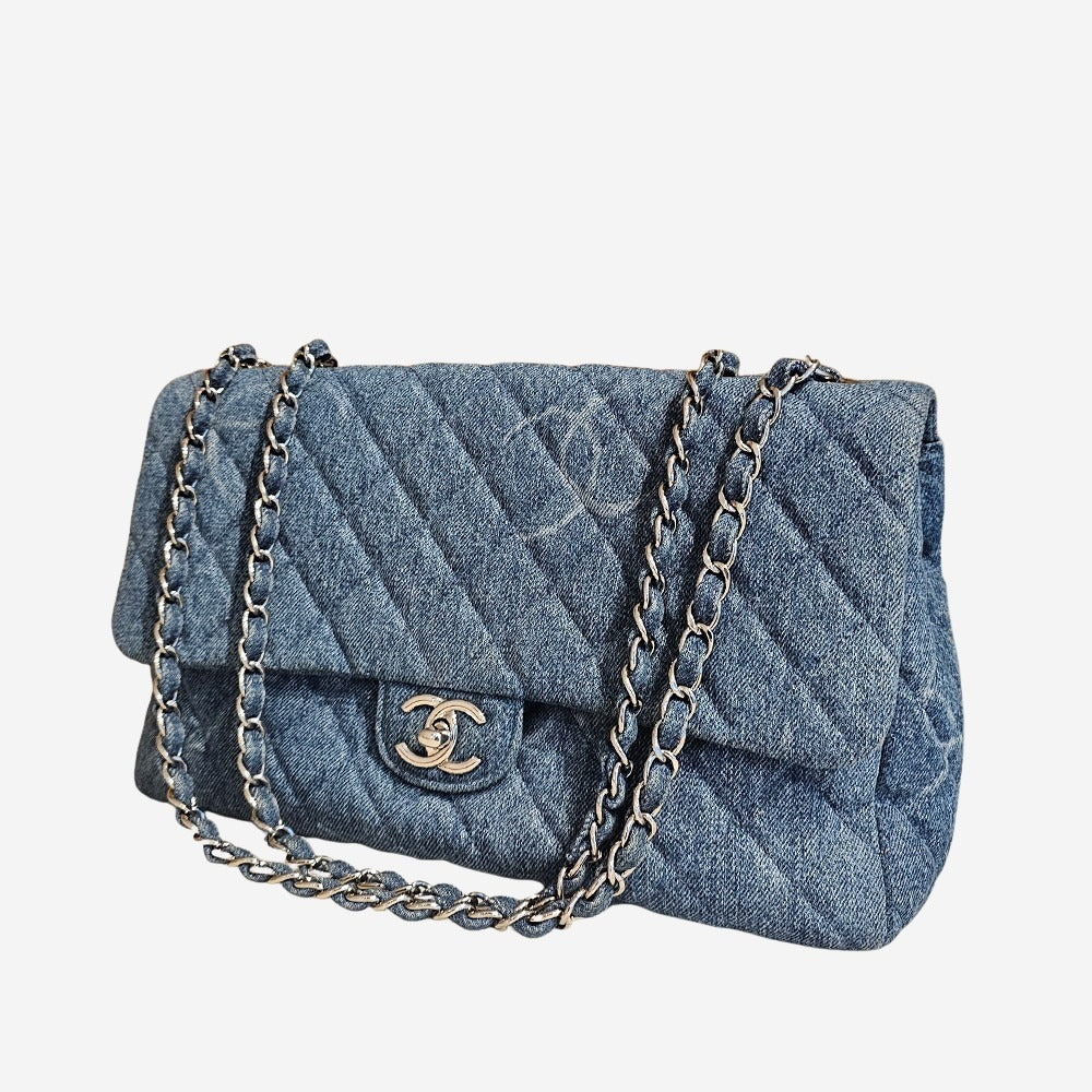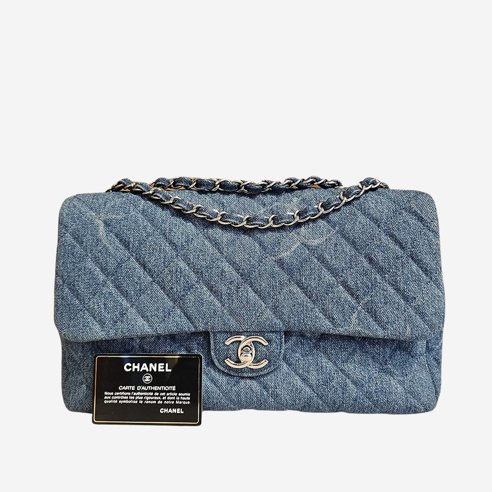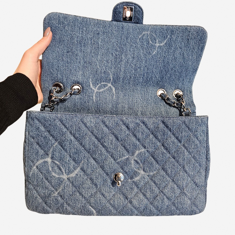 Den ikoniske klassiske flap taske, udgivet i 1983, er Karl Lagerfelds videreudvikling af Coco Chanels berømte 2.55 taske. Selvom det var Coco Chanel selv, som designede CC logoet, var det Karl Lagerfeld som fandt på at bruge dette som lås. Den klassiske flap taske er nok Chanels mest kendte og eftertragtede taske og vi forstår hvorfor. Den er tidsløs, gudesmuk & en sikker investering. Denne smukke denimtaske fra Chanels Fall/Winter 2020 kollektion har et unikt og iøjenfaldende design med et stort CC-print. Med sit rummelige hovedrum, har tasken plads til alle dine essentials som f.eks. pung, telefon, solbriller, makeuppung, nøgler mm. Derudover har tasken et indvendigt lynlåsrum samt både en indvendig og udvendig sliplomme. Elegant, funktionel og tidløs taske som er et absolut musthave for enhver Chanel-entusiast.