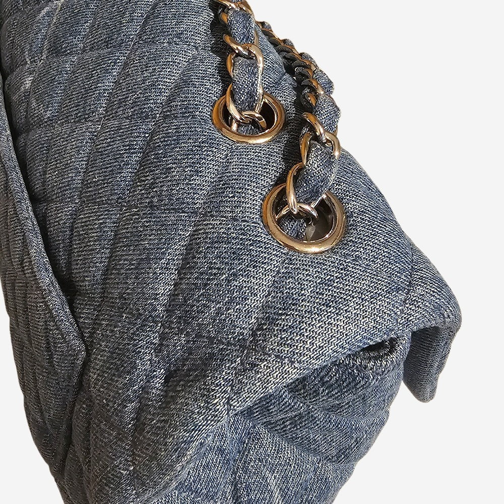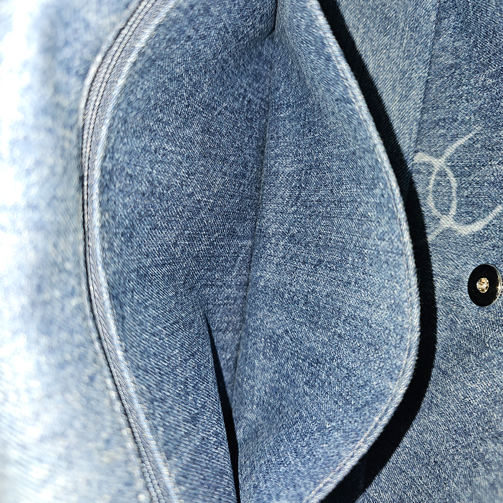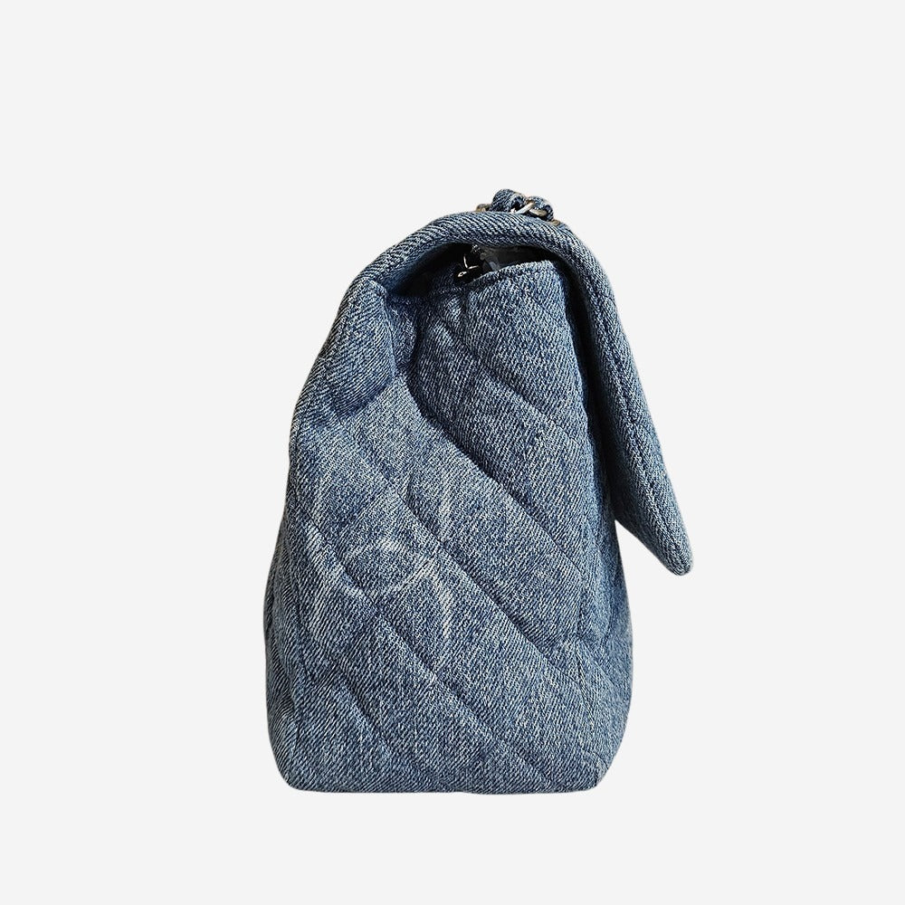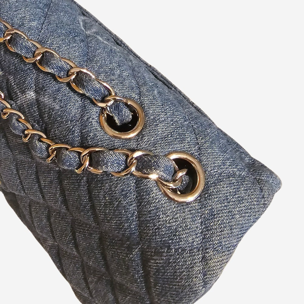 Den ikoniske klassiske flap taske, udgivet i 1983, er Karl Lagerfelds videreudvikling af Coco Chanels berømte 2.55 taske. Selvom det var Coco Chanel selv, som designede CC logoet, var det Karl Lagerfeld som fandt på at bruge dette som lås. Den klassiske flap taske er nok Chanels mest kendte og eftertragtede taske og vi forstår hvorfor. Den er tidsløs, gudesmuk & en sikker investering. Denne smukke denimtaske fra Chanels Fall/Winter 2020 kollektion har et unikt og iøjenfaldende design med et stort CC-print. Med sit rummelige hovedrum, har tasken plads til alle dine essentials som f.eks. pung, telefon, solbriller, makeuppung, nøgler mm. Derudover har tasken et indvendigt lynlåsrum samt både en indvendig og udvendig sliplomme. Elegant, funktionel og tidløs taske som er et absolut musthave for enhver Chanel-entusiast.