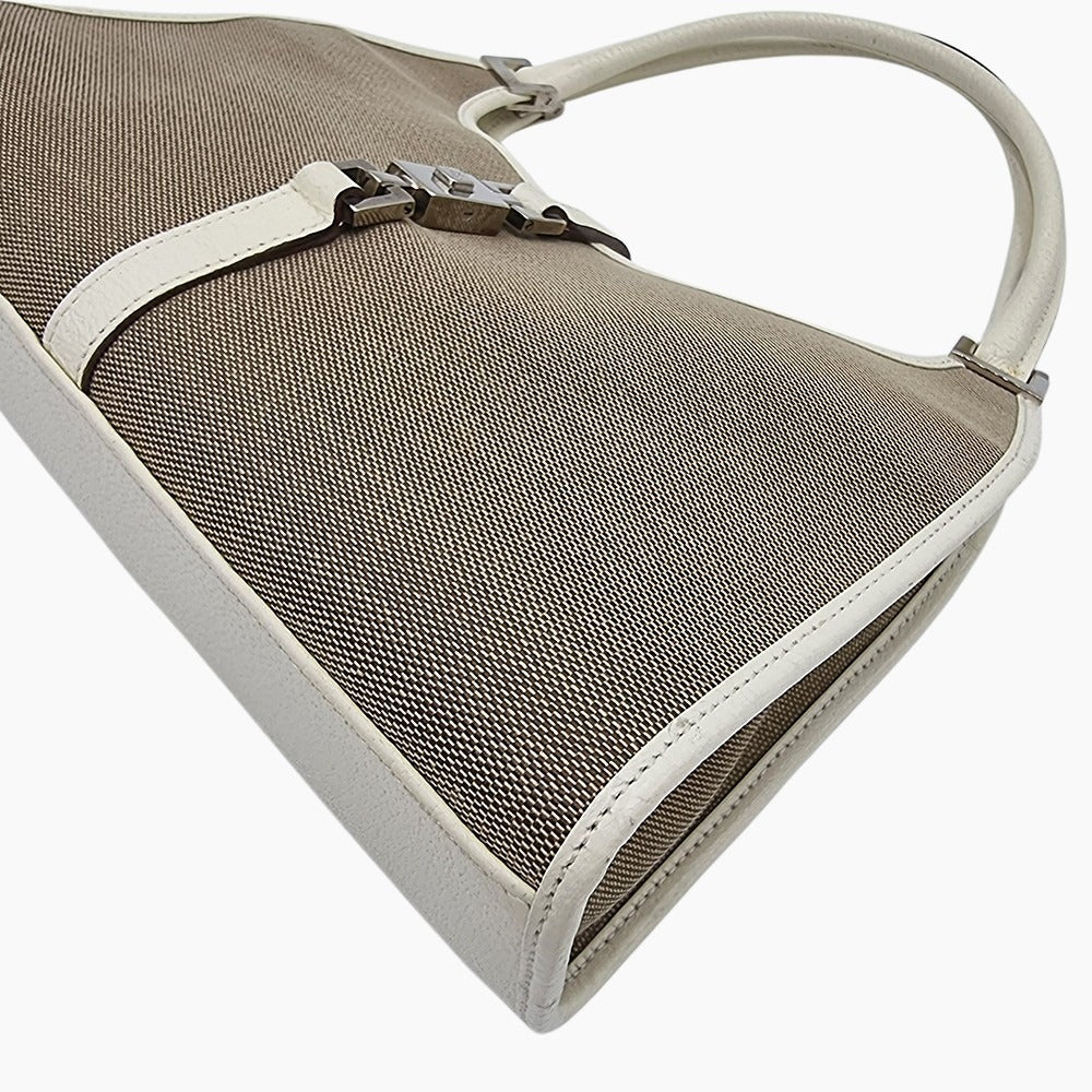 Denne skønne Jackie er fremstillet i beige canvas med hvid læder trimning samt håndtag og sølv hardware. Jackie rummer alle dine hverdagsfornødenheder såsom telefon, pung, nøgler, solbriller plus det løse. Tasken har yderligere en indvendig lynlåslomme.