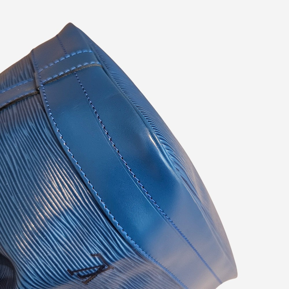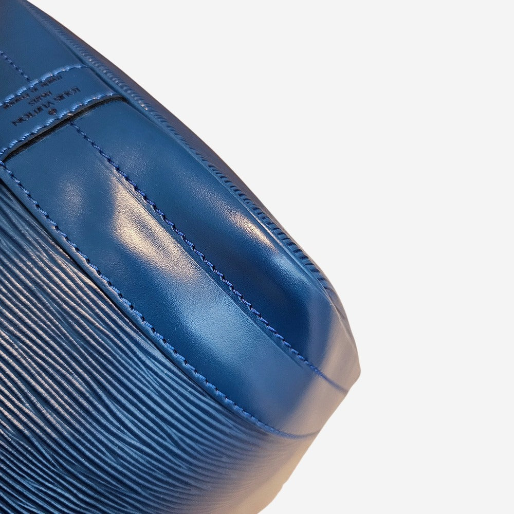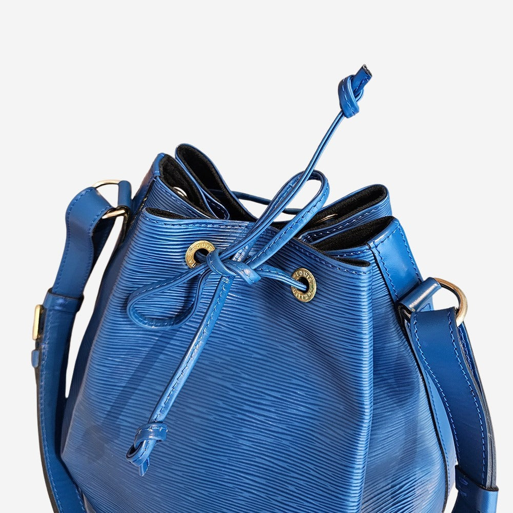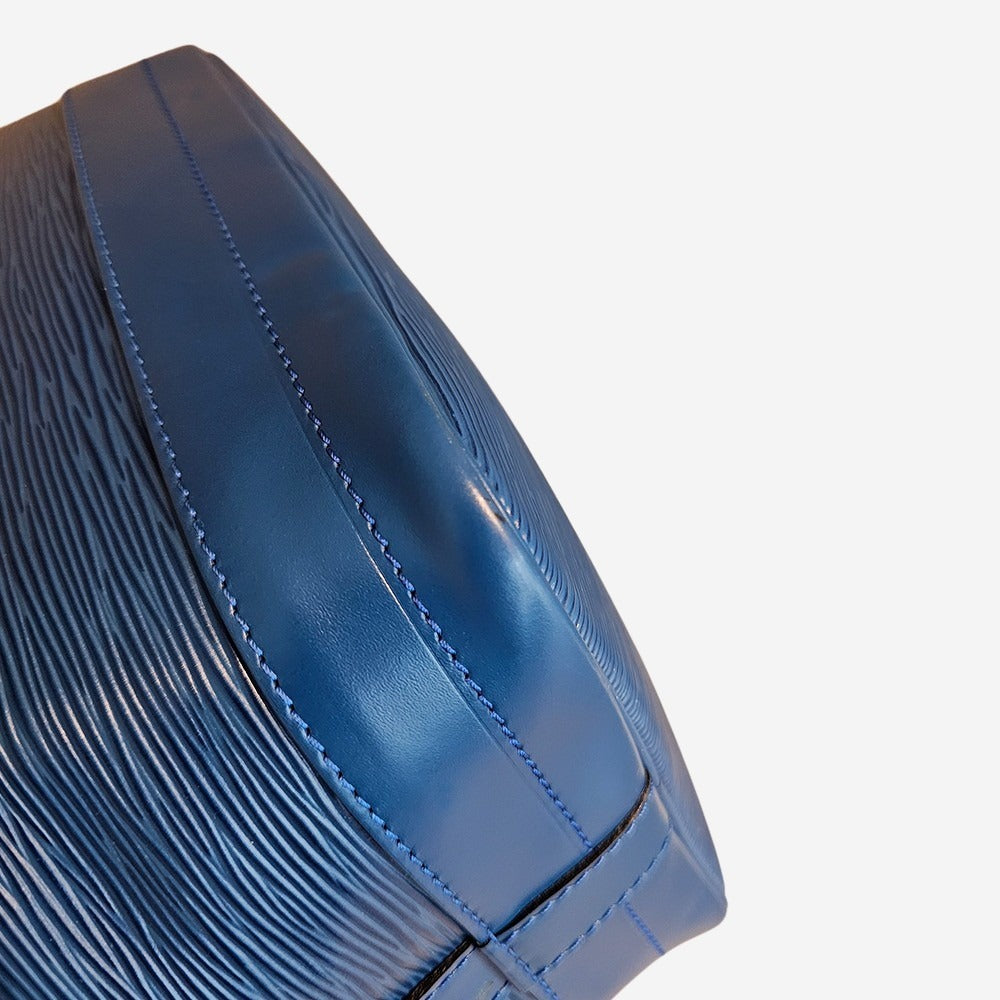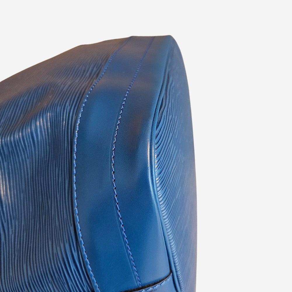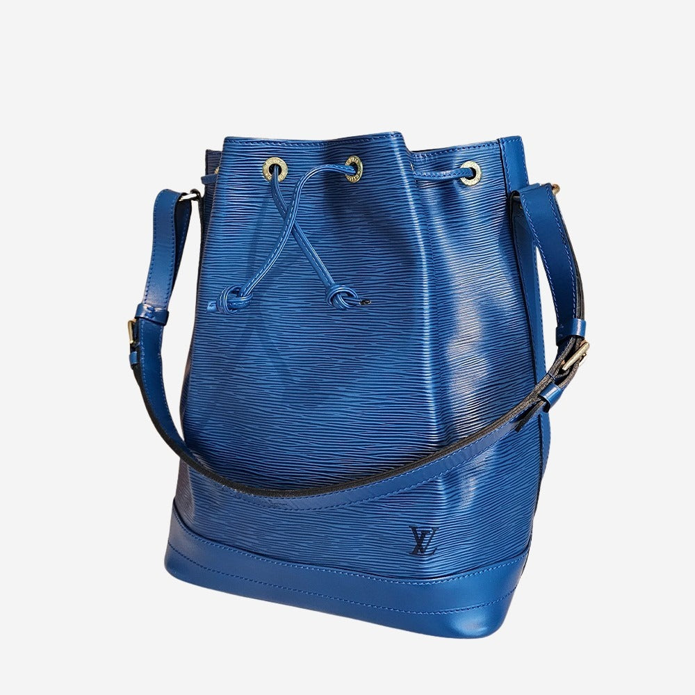 Noé blev introduceret i 1932, da en champagneproducent bestilte designet for elegant at kunne transportere champagneflasker. Noé kan stadig i dag indeholde 5 flasker champagne. Tasken er fremstillet af Louis Vuittons smukke og riflede epi læder med læderrem samt detaljer i blåt læder. Tasken har et stort hovedrum som rummer alle dine hverdags essentials.