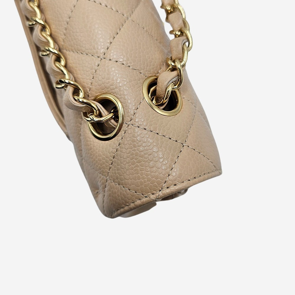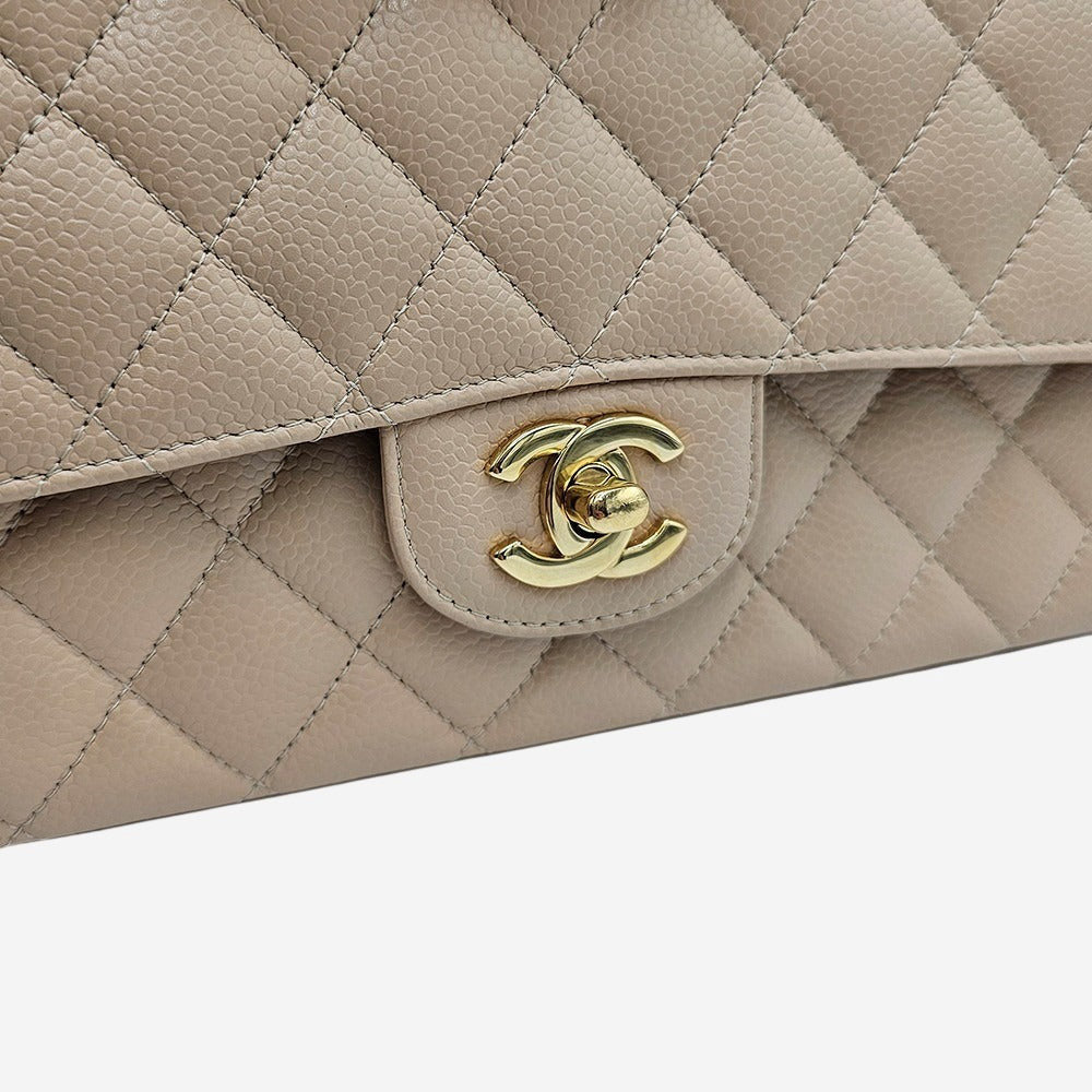Denne ikoniske taske, udgivet i 1983, er Karl Lagerfelds videreudvikling af Coco Chanels berømte 2.55 taske. Selvom det var Coco Chanel selv, som designede CC logoet, var det Karl Lagerfeld som fandt på at bruge dette som lås. Den klassiske flap bag er nok Chanels mest kendte og eftertragtede taske og vi forstår hvorfor. Lige præcis denne kombination er en af vores ultimative favoritter. Det slidstærke caviar skind i beige kombineret med guld hardware. Så bliver det ikke smukkere. Taskens hovedrum kan indeholde pung, solbriller, telefon samt nøgler. Derudover har den yderligere 3 indvendige rum samt 1 udvendig sliplomme.