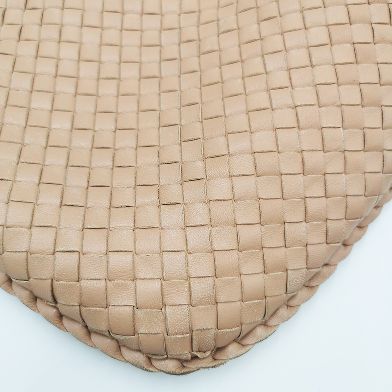 Denne populære taske fra Bottega Veneta er fremstillet i det blødeste nappalæder. Dette læder bliver vævet for at gøre det ekstra stærkt og holdbart. Denne fletteteknik, kendt som Intrecciato, er blevet kendetegnet for Bottega Veneta. Huset har aldrig branded sine produkter med etiketter eller logoer, så denne detalje, er det som gør dem genkendelige som Bottega Veneta. Tasken har et stort og rummeligt hovedrum som lukkes med lynlås. Derudover har tasken én indvendig lynlåslomme. Det er en rummelig taske som kan indeholde alle dine hverdags essentials plus meget mere.