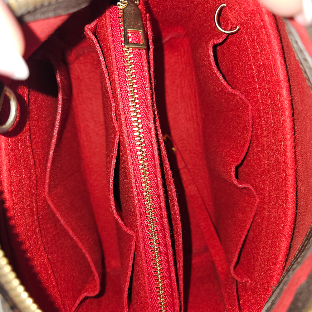 - Der medfølger rumdeler som er perfekt til at inddele alle ens hverdagsnødvendigheder i forskellige rum. Her er flere sliplommer plus lynlåslomme. Rumdeleren hjælper også til at holde taskens form