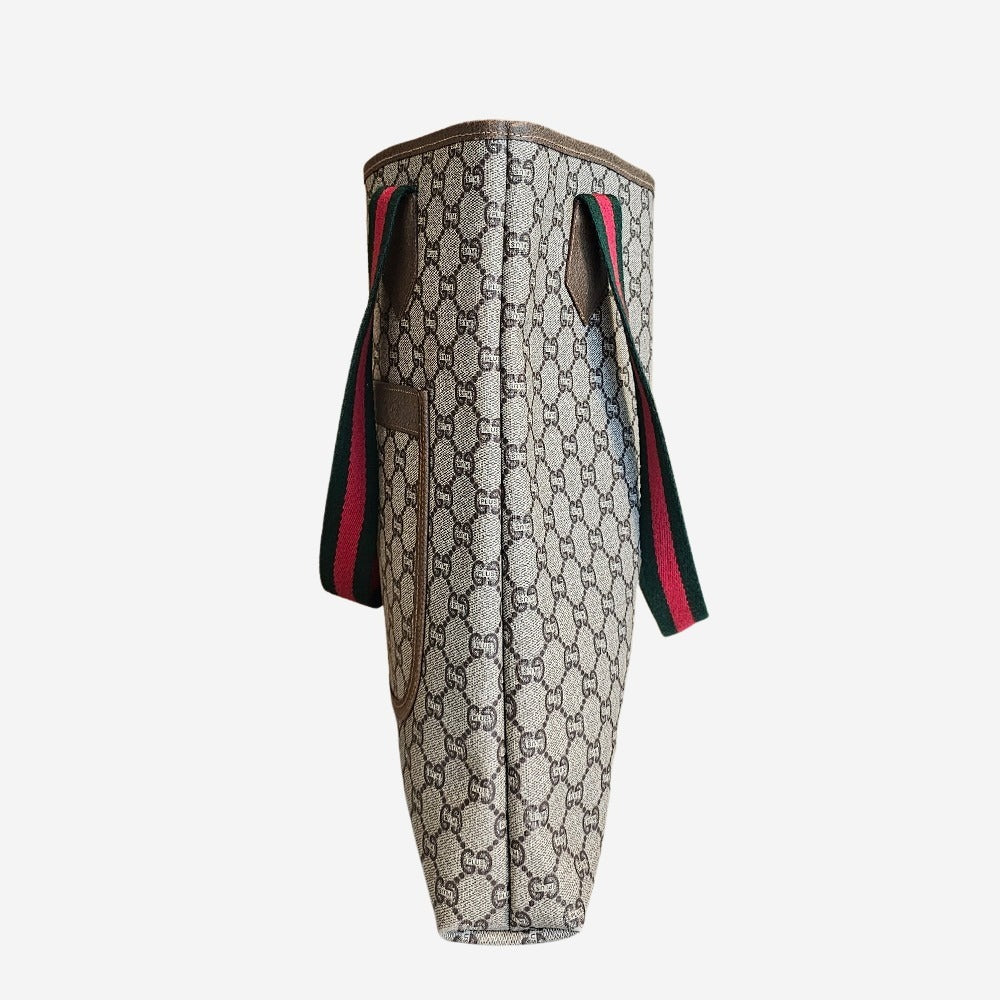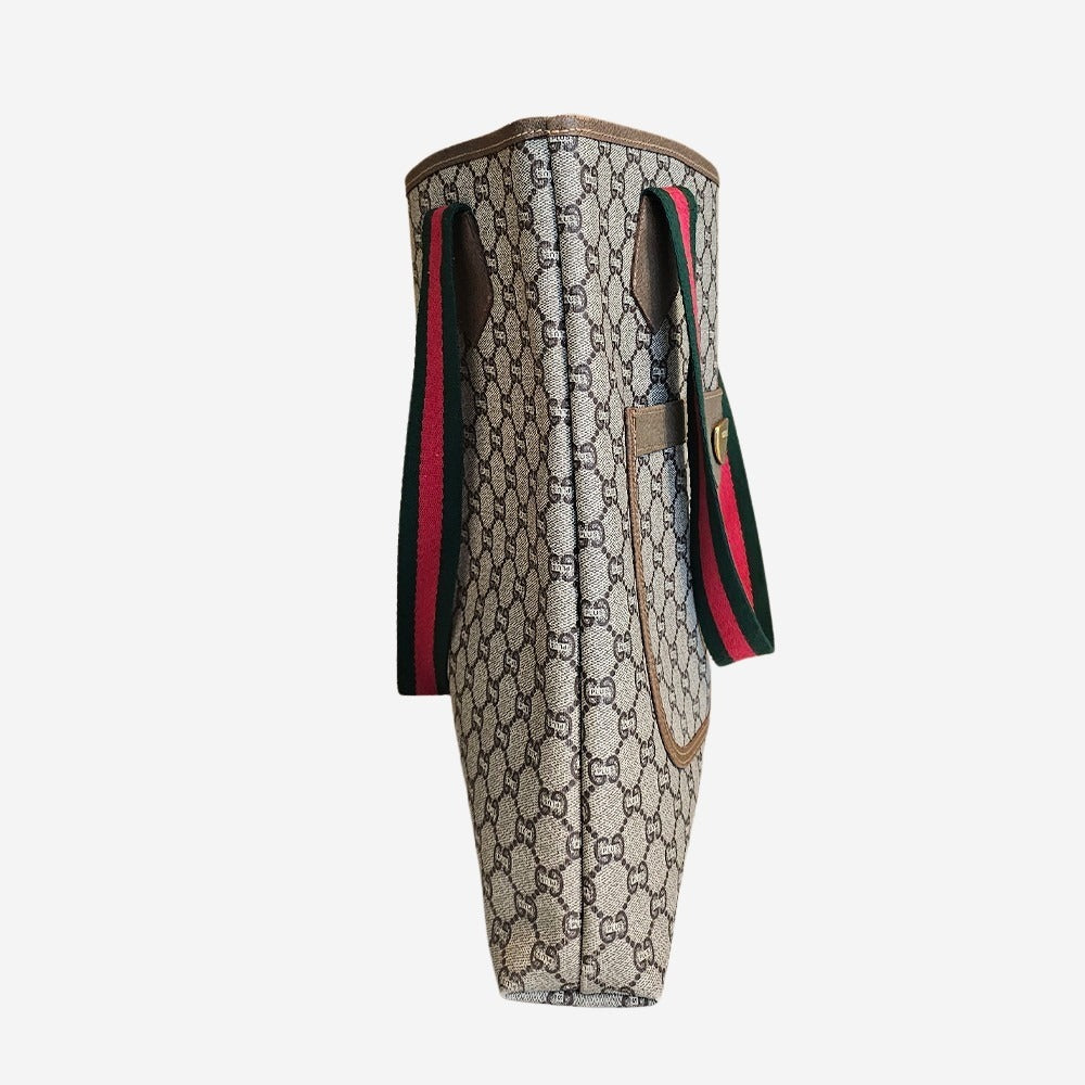 Denne populære tote fra Gucci er fremstillet af Coated Canvas, med husets ikoniske diamant mønster samt detaljer i mørkebrunt læder. Tasken har et stort og rummeligt hovedrum som nemt kan indeholde både computer og alle hverdagsfornødenheder. Derudover findes en udvendig sliplomme. Denne klassiker bliver hurtigt din go-to skole eller arbejdstaske.