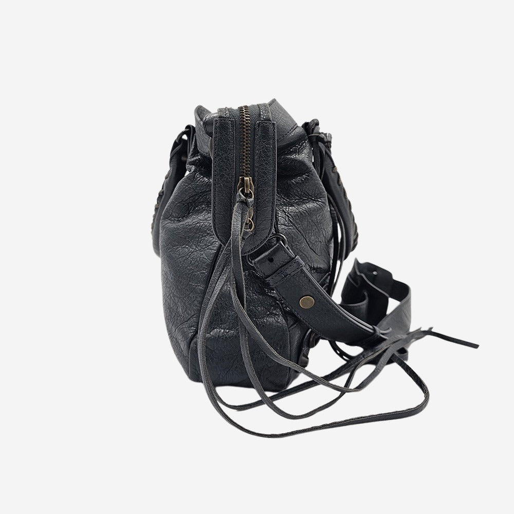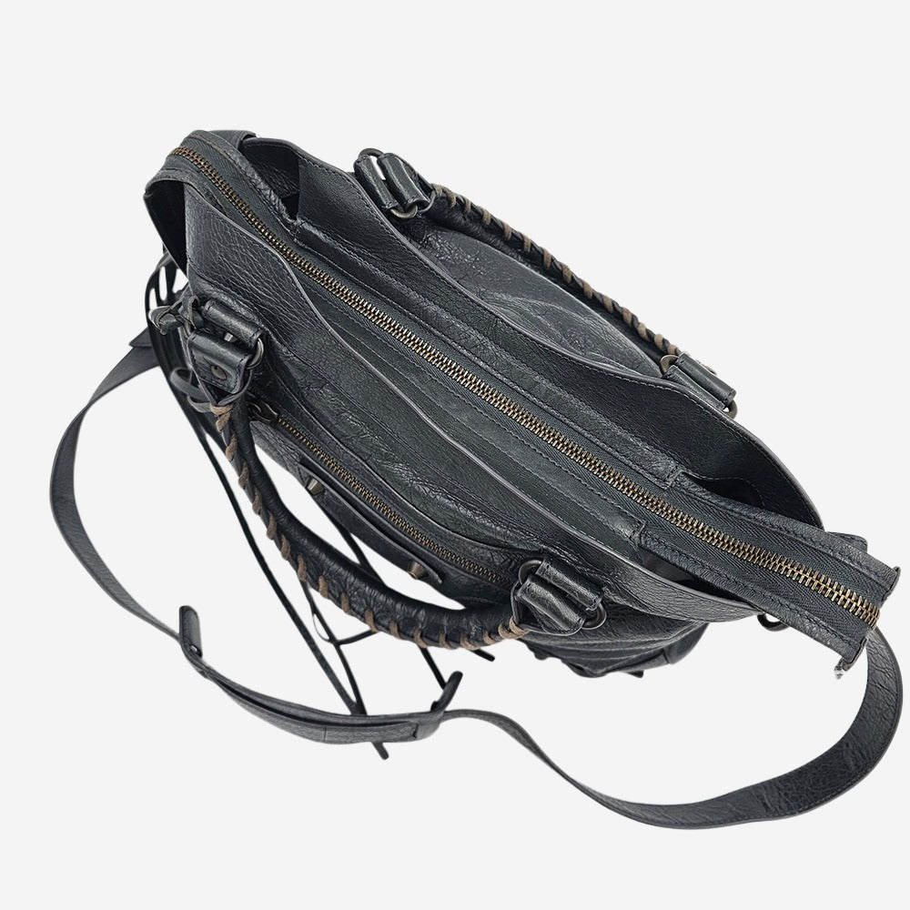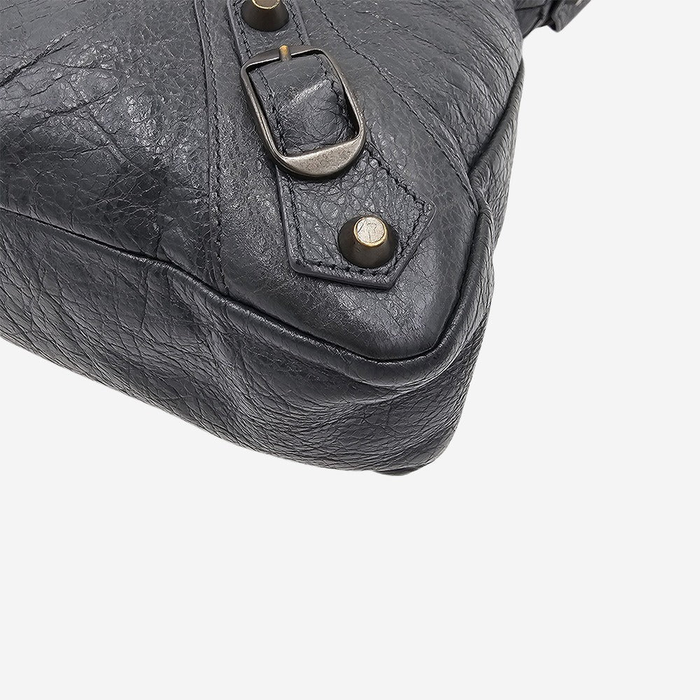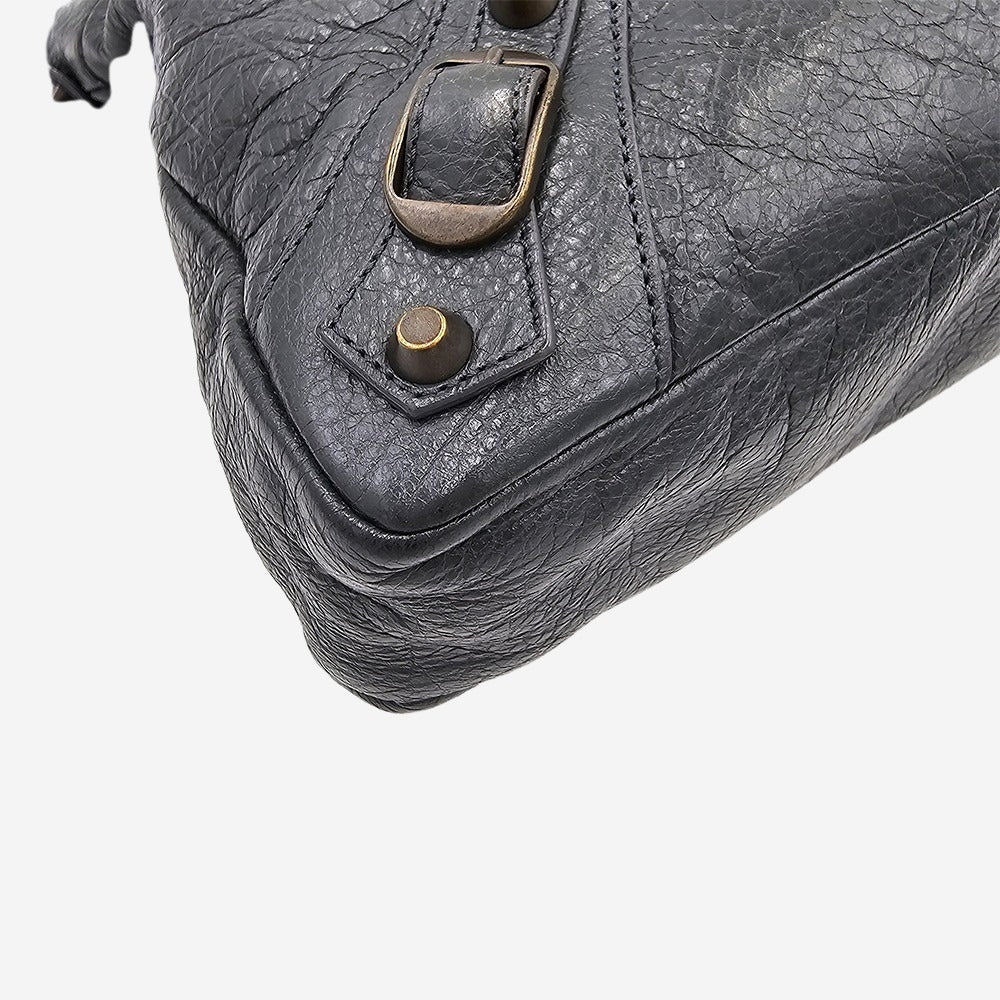 Balenciagas ”Motorcycle Bags” er i dag nogle af modebranchen største IT tasker. Denne version er nok deres mest kendte og hedder: The City Bag. Denne model er dog i deres mindre og mere lette udgave - "Mini City". Det bløde lammeskind og de bløde former, kombineret med nitter, spænder og lædertassel’s, gør den både rå og feminin på samme tid. Selvom denne udgave er mindre, kan taskens hovedrum stadig indeholde alle dine hverdagsfornødenheder såsom pung, makeup, telefon, vandflaske samt nøgler. Der findes en indvendig samt udvendig lynlåslomme. Denne taske kan bæres som både skuldertaske samt crossbody.