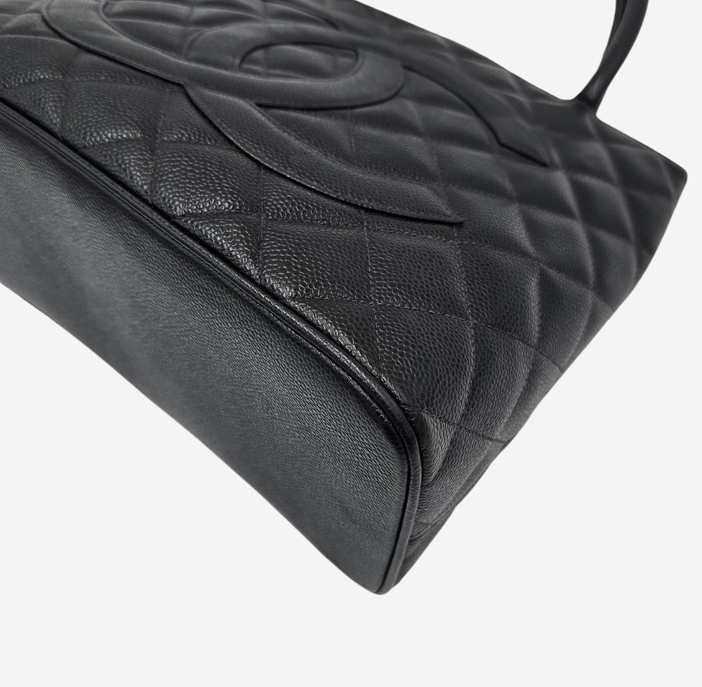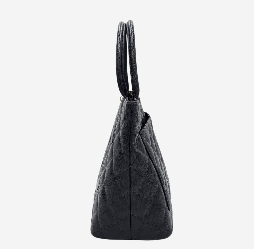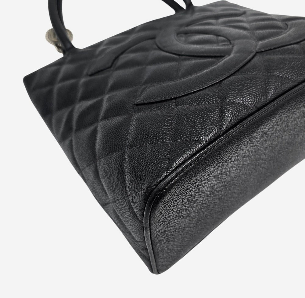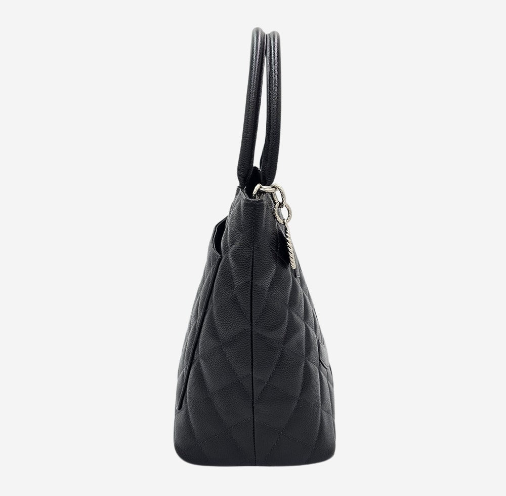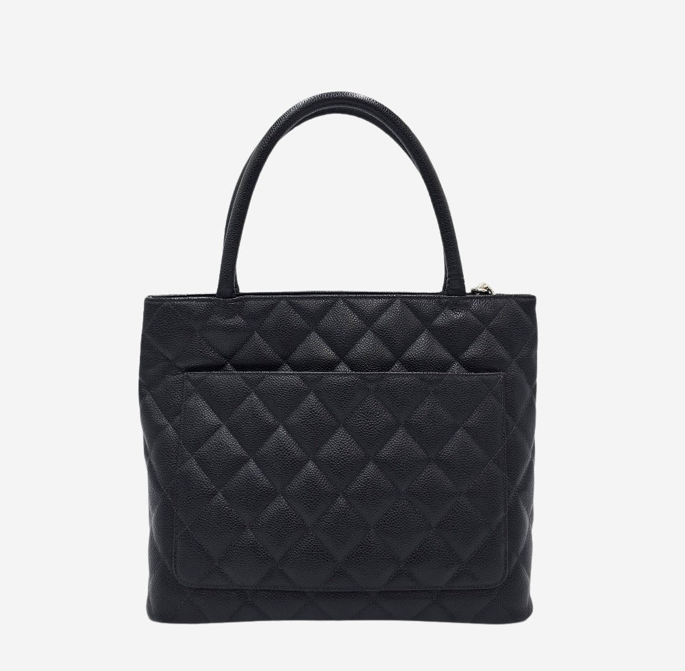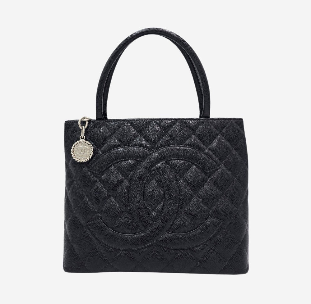 Chanels Medallion tote er en af mærkets mest ikoniske og velkendte tasker. Tasken har sit navn fra den smukke medaljon som sidder på lynlåsen. Desværre stoppede Chanel produktionen af tasken  i 2013, hvilket har gjort vintage taskerne endnu mere eftertragtede. Med det store CC-logo foran, den klassiske quiltning, et slankt men rummeligt design og de to store robuste håndtag, som gør tasken nem at bære over skulderen, er det ikke mærkeligt at tasken populær. Denne tote er en perfekt hverdagstaske, som passer til alle dine daglige behov, og har foruden det store hovedrum to indvendige lommer.