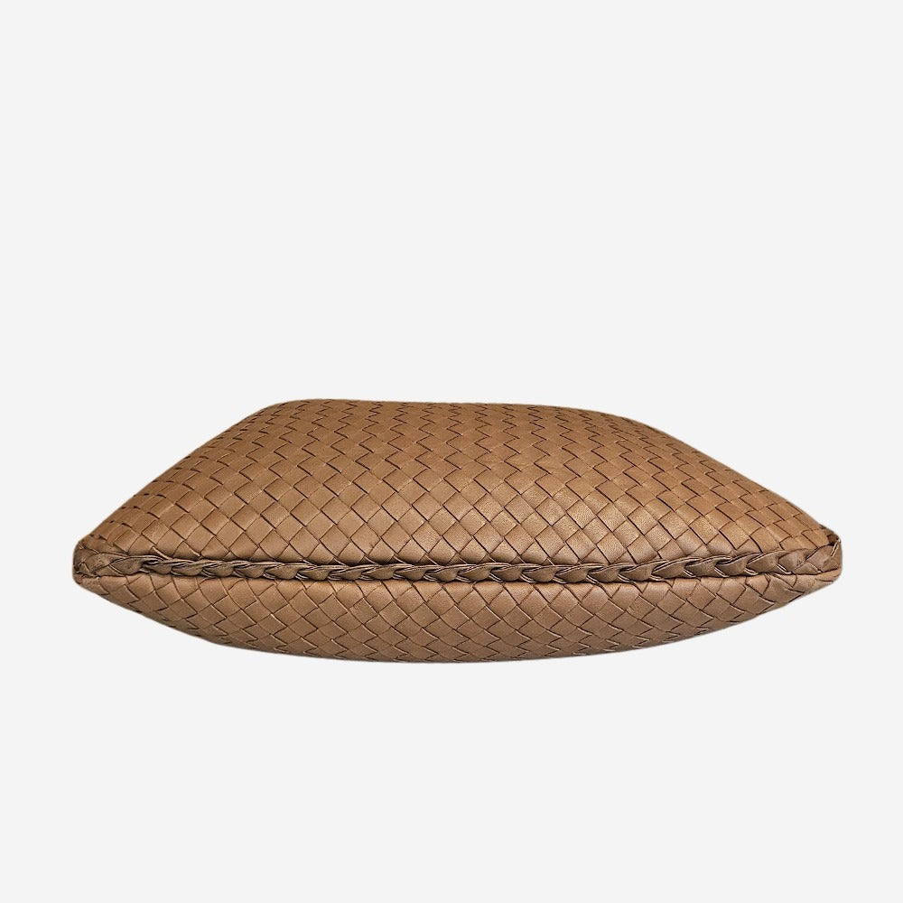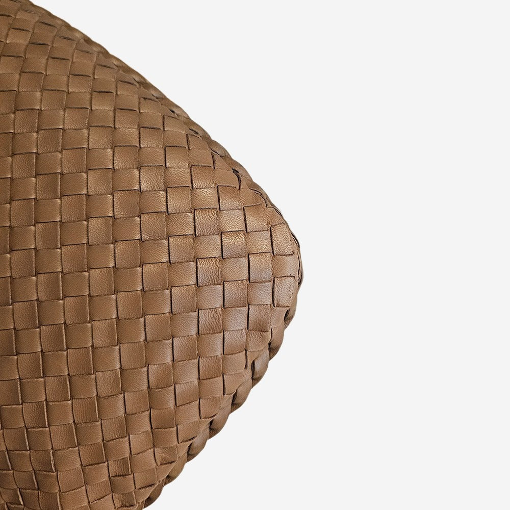 Denne populære taske fra Bottega Veneta er fremstillet i det blødeste nappalæder. Læderet bliver vævet for at gøre det ekstra stærkt og holdbart. Denne fletteteknik, kendt som Intrecciato, er blevet kendetegnet for Bottega Veneta. Huset har aldrig branded sine produkter med etiketter eller logoer, så denne detalje, er det som gør dem genkendelige som Bottega Veneta. Tasken har et stort og rummeligt hovedrum som lukkes med lynlås. Derudover har tasken én indvendig lynlåslomme. Det er en rummelig taske som kan indeholde alle dine hverdags essentials plus meget mere.
