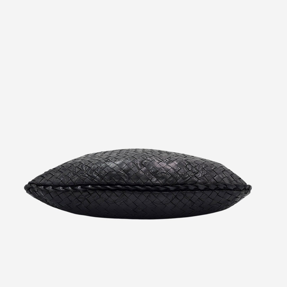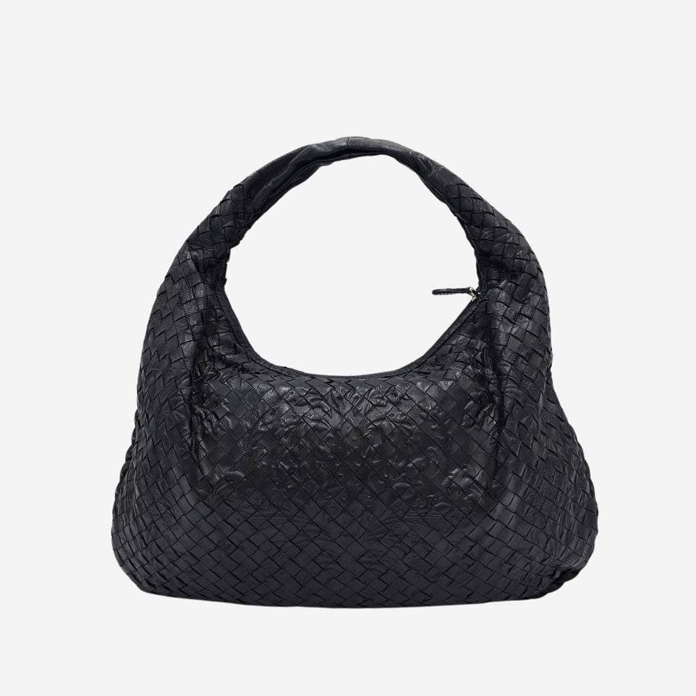 Denne meget smukke limited edition hobo er klassisk fremstillet af tætvævet nappalæder med et diskret fleur-de-lis-mønster præget overalt på ydersiden. Fleur-de-lis er et symbol, der betyder "liljeblomst" på fransk og er en forenklet afbildning af en lilje eller iris. Læderet bliver vævet for at gøre det ekstra stærkt og holdbart. Denne fletteteknik, kendt som Intrecciato, er blevet kendetegnet for Bottega Veneta. Huset har aldrig branded sine produkter med etiketter eller logoer, så denne detalje, er det som gør dem genkendelige som Bottega Veneta. De raffinerede detaljer og den exceptionelle kvalitet giver denne Bottega Veneta hobo et elegant og sofistikeret look til hverdagsbrug. Tasken har et stort og rummeligt hovedrum som lukkes med lynlås. Derudover har tasken én indvendig lynlåslomme. Det er en rummelig taske som kan indeholde alle dine hverdags essentials plus meget mere.