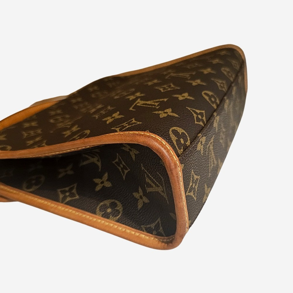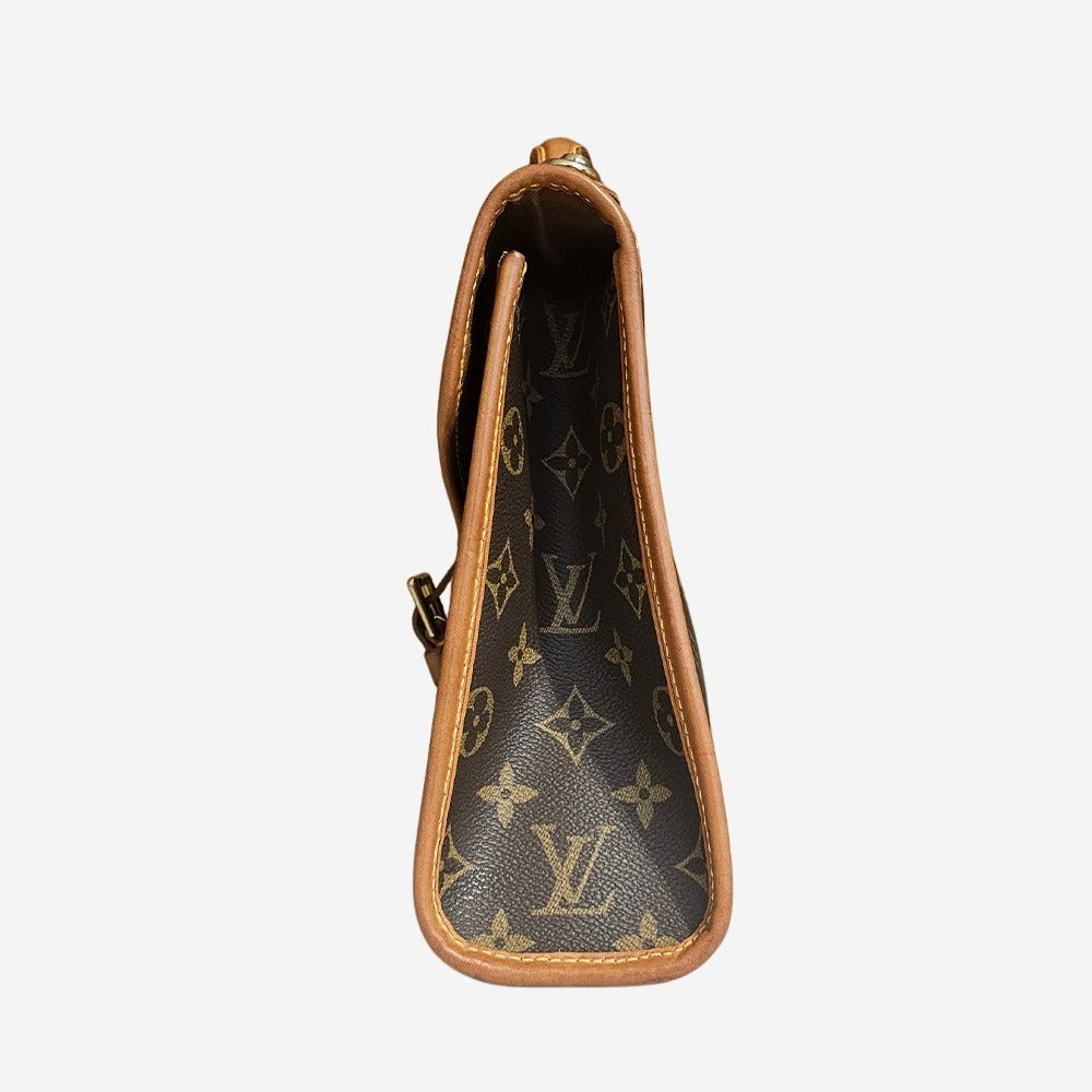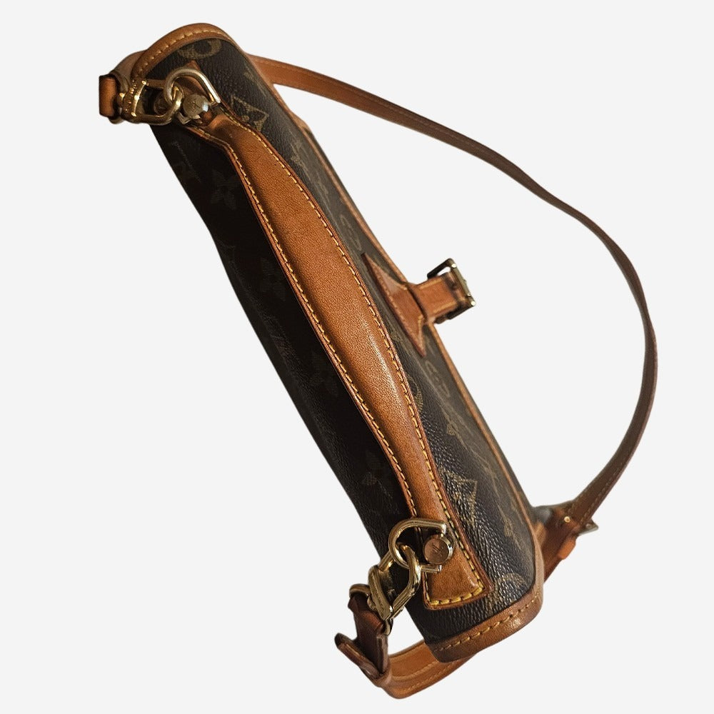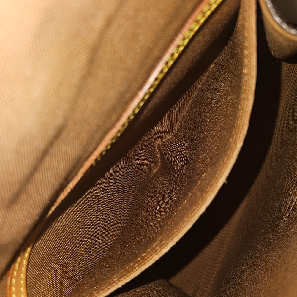 Louis Vuittons Bel Air i str. PM er en anderledes og sjælden model, som er svær at finde. Den har et slankt og stilet design, der mest af alt minder om en lille dokumentmappe. Den er fremstillet af Louis Vuittons ikoniske monogram coated canvas med aftagelig og justerbar vachetta læderrem, samt yderligere detaljer i læder også. Taskens flap åbnes med en spænde og kan rumme alle dine hverdagsnødvendigheder - Telefon, pung, nøgler, solbriller mm. Den har foruden det store rum også en indvendig sliplomme. Bel Air kan holdes i hånden, bæres på skulderen eller crossbody.