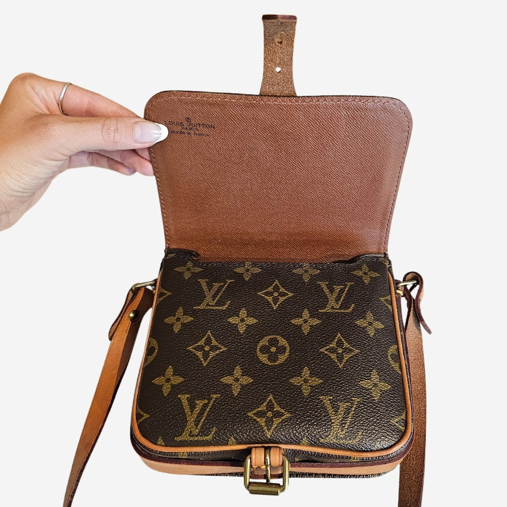 Denne smukke vintage Louis Vuitton Cartouchiere kommer i 3 str. hvoraf denne er den mindste i flokken. Tasken blev udgivet i 1980'erne og udgik allerede igen i 1990'erne hvilket gør denne model ekstra eftertragtet. Tasken er fremstillet i Louis Vuitton's ikoniske Monogram canvas og er med smukke vachetta læderdetaljer samt guld hardware. Tasken er med justerbar rem hvilket gør den perfekt som både crossbody og skuldertaske. Tasken har ét rum med plads til telefon (Max. 15 cm), nøgler, kortholder samt lipgloss. Den perfekte "aften" taske.