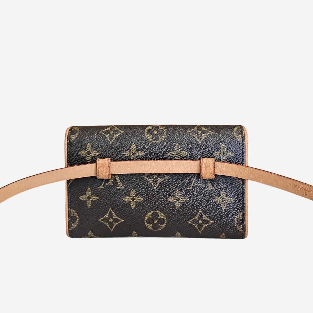 Pochette Florentine er fremstillet af Louis Vuittons ikoniske monogram Coated Canvas med Vachetta læder bælte samt læderdetaljer. Florentine er en simpel men stilet lille bæltetaske som rummer din telefon (Max 15 cm), kreditkort samt nøgler. Tasken har et rum samt et justerbart tyndt bælte. Louis Vuitton Florentine kan også bruges som høj crossbody.