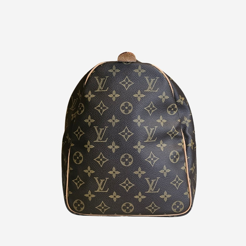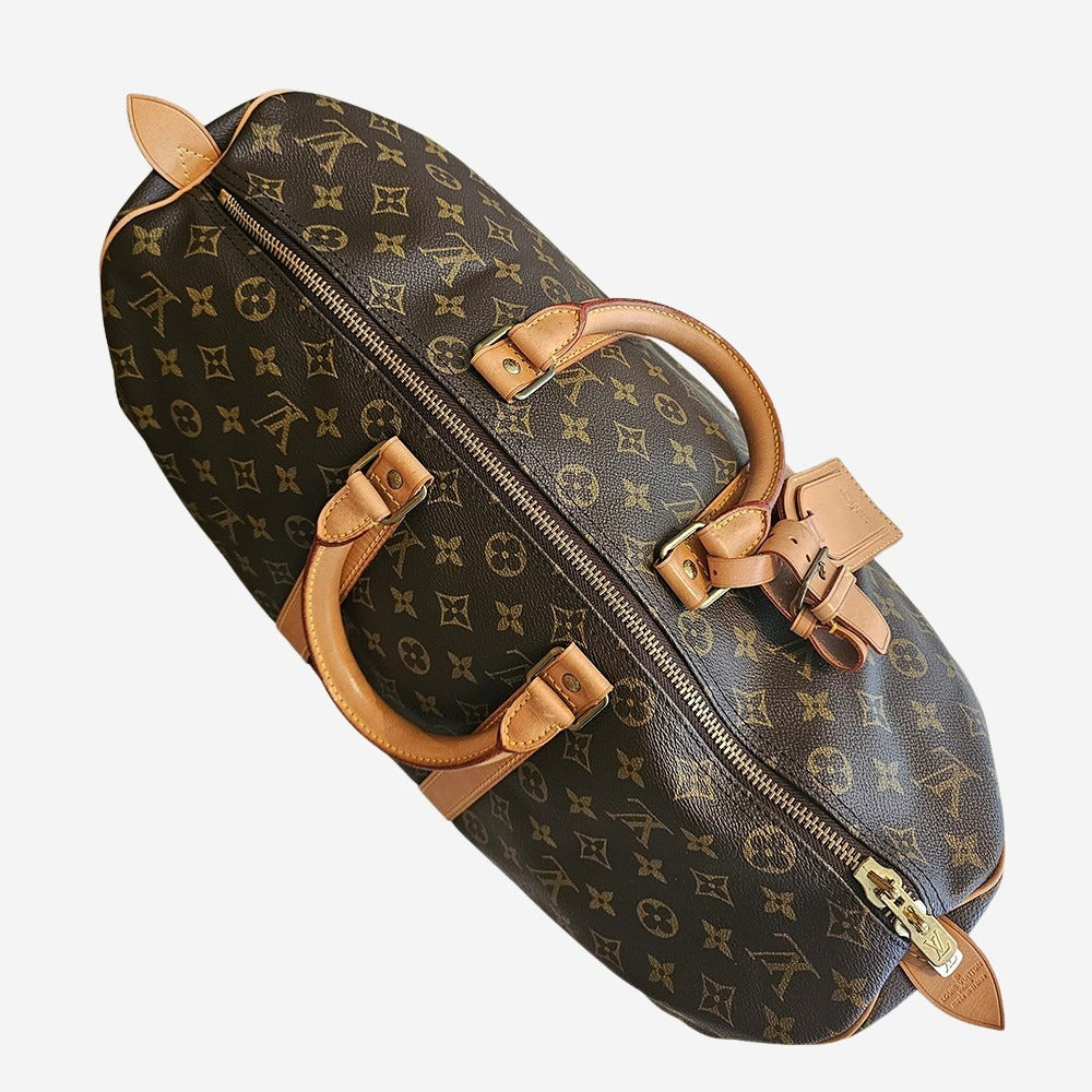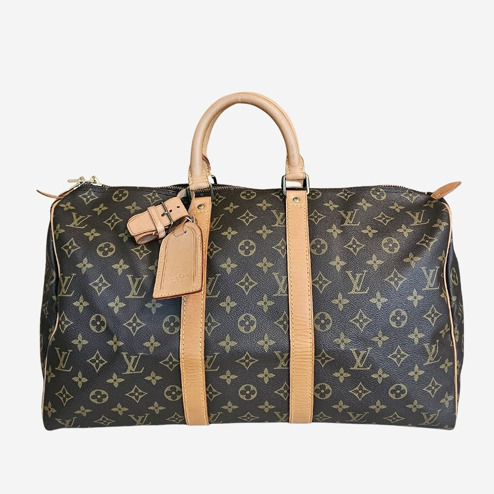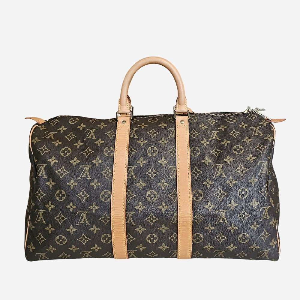 Keepall er fremstillet af Louis Vuittons ikoniske monogram Coated Canvas med Vachetta læder håndtag samt detaljer. Som navnet antyder rummer Louis Vuitton Keepall en hel del. Tasken har et stort hovedrum som nemt kan rumme garderoben til en lille weekendtur. Tasken kan også foldes helt fladt sammen og medbringes i kufferten, så du kan bruge den til håndbagage på vej hjem til alle dine indkøb. Keepall er og bliver den perfekte rejsetaske.