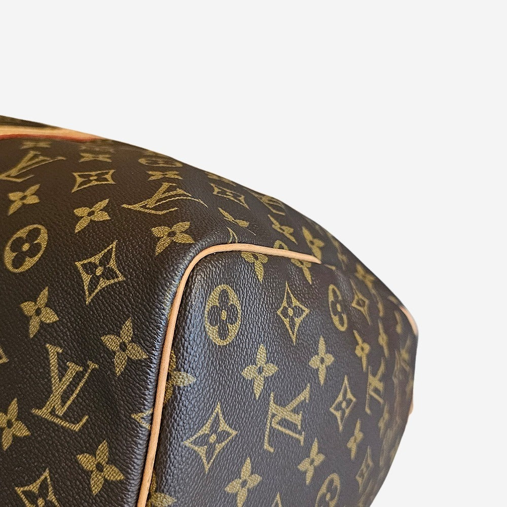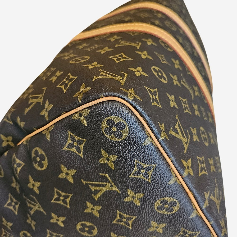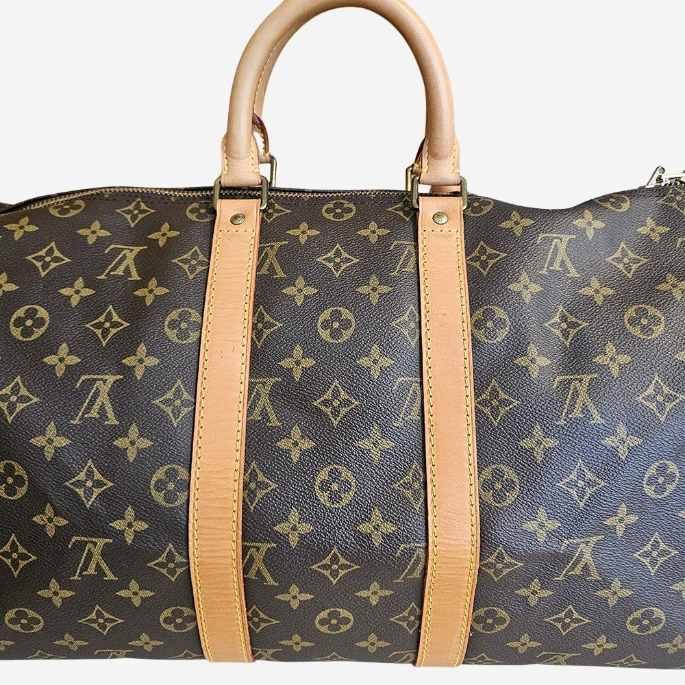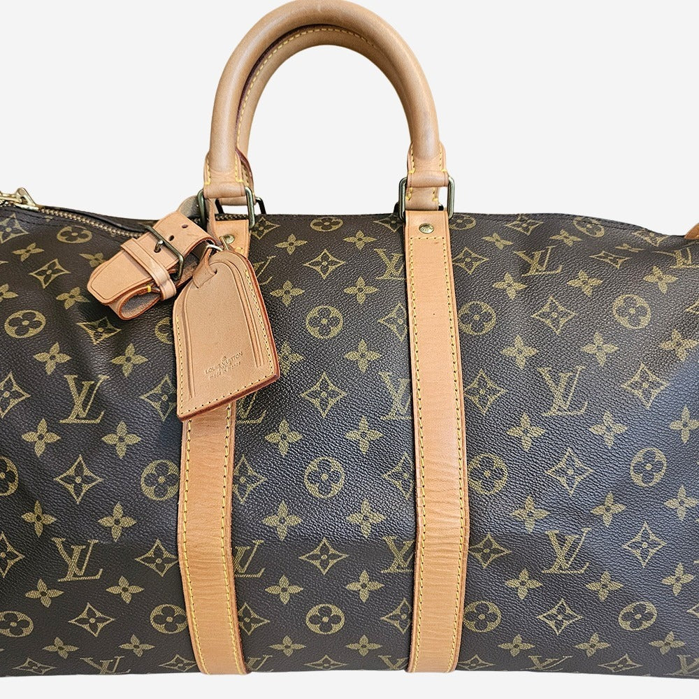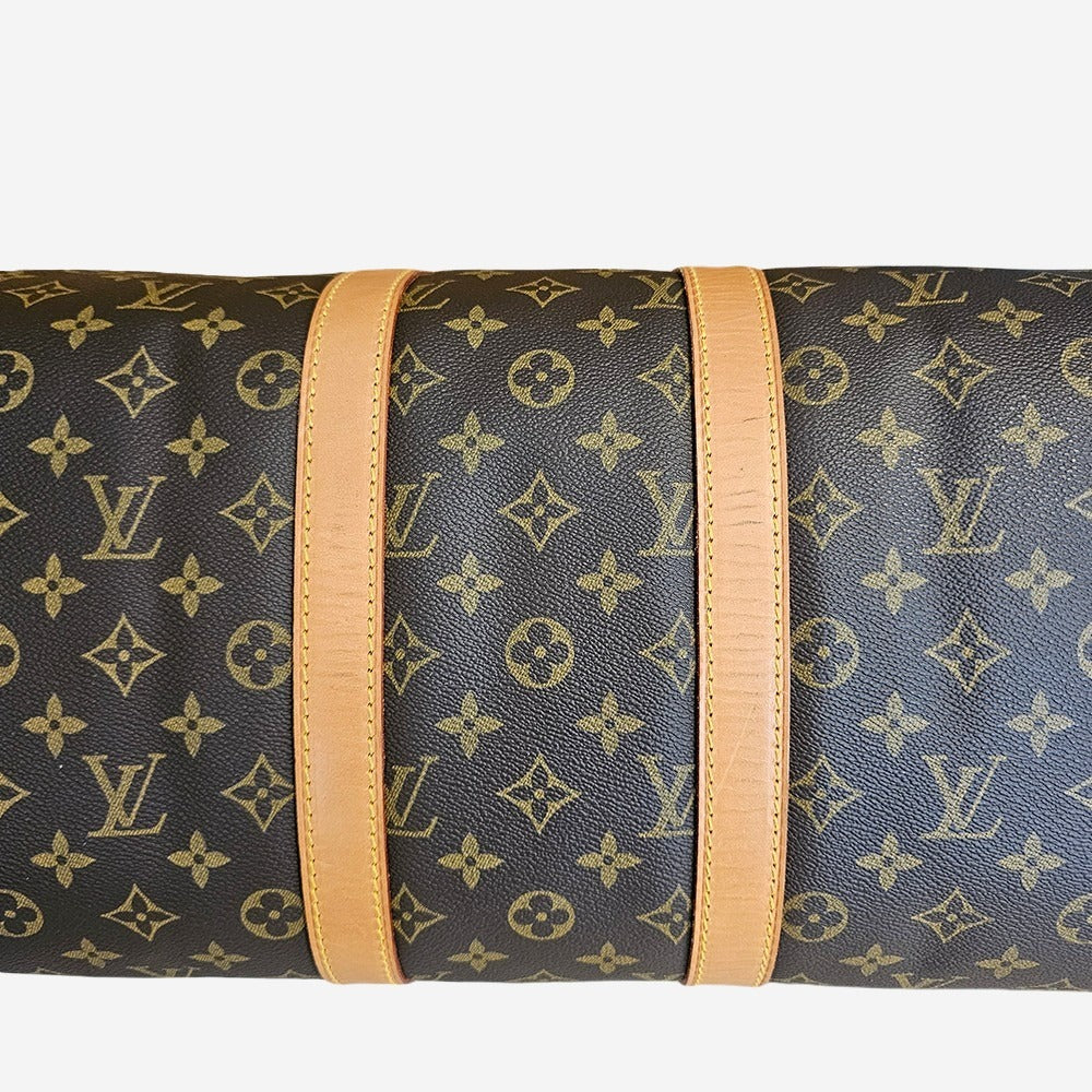 Keepall er fremstillet af Louis Vuittons ikoniske monogram Coated Canvas med Vachetta læder håndtag samt detaljer. Som navnet antyder rummer Louis Vuitton Keepall en hel del. Tasken har et stort hovedrum som nemt kan rumme garderoben til en lille weekendtur. Tasken kan også foldes helt fladt sammen og medbringes i kufferten, så du kan bruge den til håndbagage på vej hjem til alle dine indkøb. Keepall er og bliver den perfekte rejsetaske.