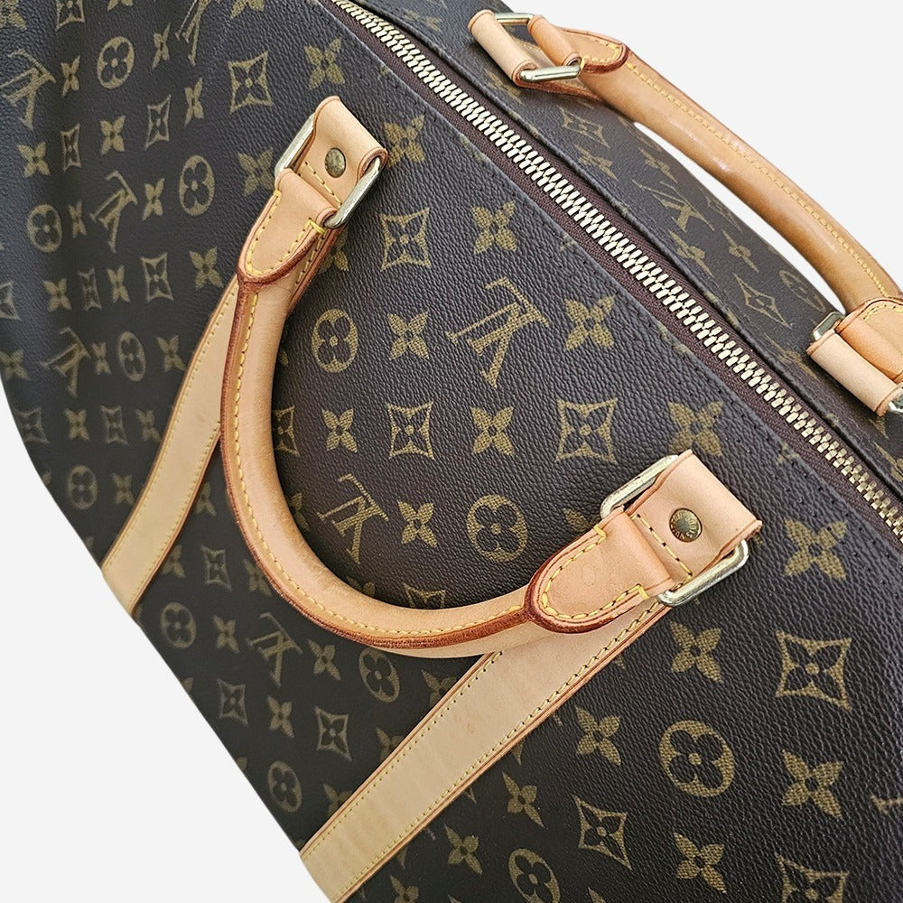 Keepall er fremstillet af Louis Vuittons ikoniske monogram Coated Canvas med Vachetta læder håndtag samt detaljer. Som navnet antyder rummer Louis Vuitton Keepall en hel del. Tasken har et stort hovedrum som nemt kan rumme garderoben til en forlænget weekend og for nogle en hel uges ferie. Keepall er og bliver den perfekte rejsetaske.