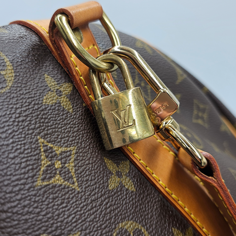 Keepall er fremstillet af Louis Vuittons ikoniske monogram Coated Canvas med Vachetta læder håndtag samt detaljer. Som navnet antyder rummer Louis Vuitton Keepall en hel del. Tasken har et stort hovedrum som nemt kan rumme garderoben til en forlænget weekend og for nogle en hel uges ferie. Tasken kan også foldes helt fladt sammen og medbringes i kufferten, så du kan bruge den til håndbagage på vej hjem til alle dine indkøb. Keepall er og bliver den perfekte rejsetaske. Denne Keepall har desuden skulderrem som kan sættes på efter behov og tasken kan derfor også bruges over skulderen eller crossbody.