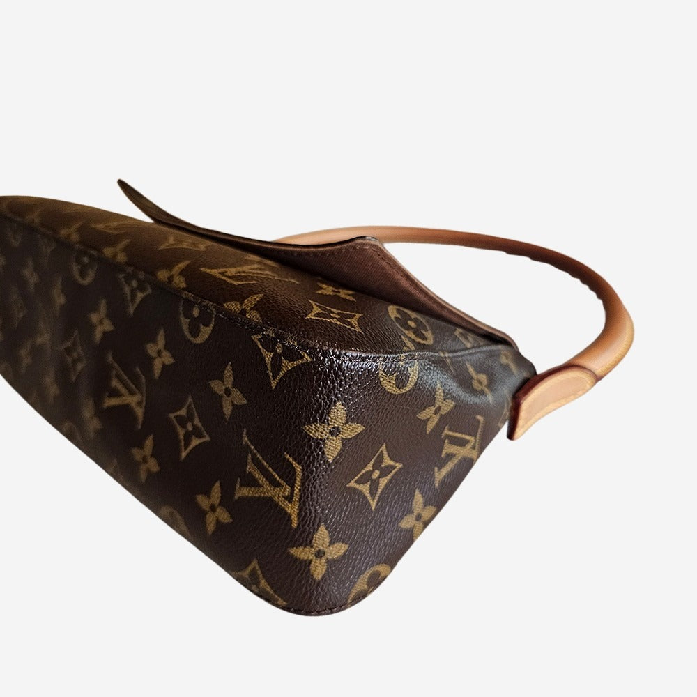 Looping er en ægte vintage skat. Den blev udgivet i 2002, men allerede et par år senere stoppede Louis Vuitton produktionen og tasken er derfor i dag blevet en sjælden sag. Tasken har sit navn fra sin smukke "loop" strukturerede skulderrem. Tasken blev produceret i 3 str. hvoraf denne er den mindste og mest populære str. Den kan rumme alle dine hverdagsfornødenheder såsom pung, telefon, solbriller, nøgler plus mere. Den lukkes med magnetknap og indeholder desuden en indvendig lynlås lomme. Looping er en virkelig cool og anderledes taske, som man ikke ser ofte.
