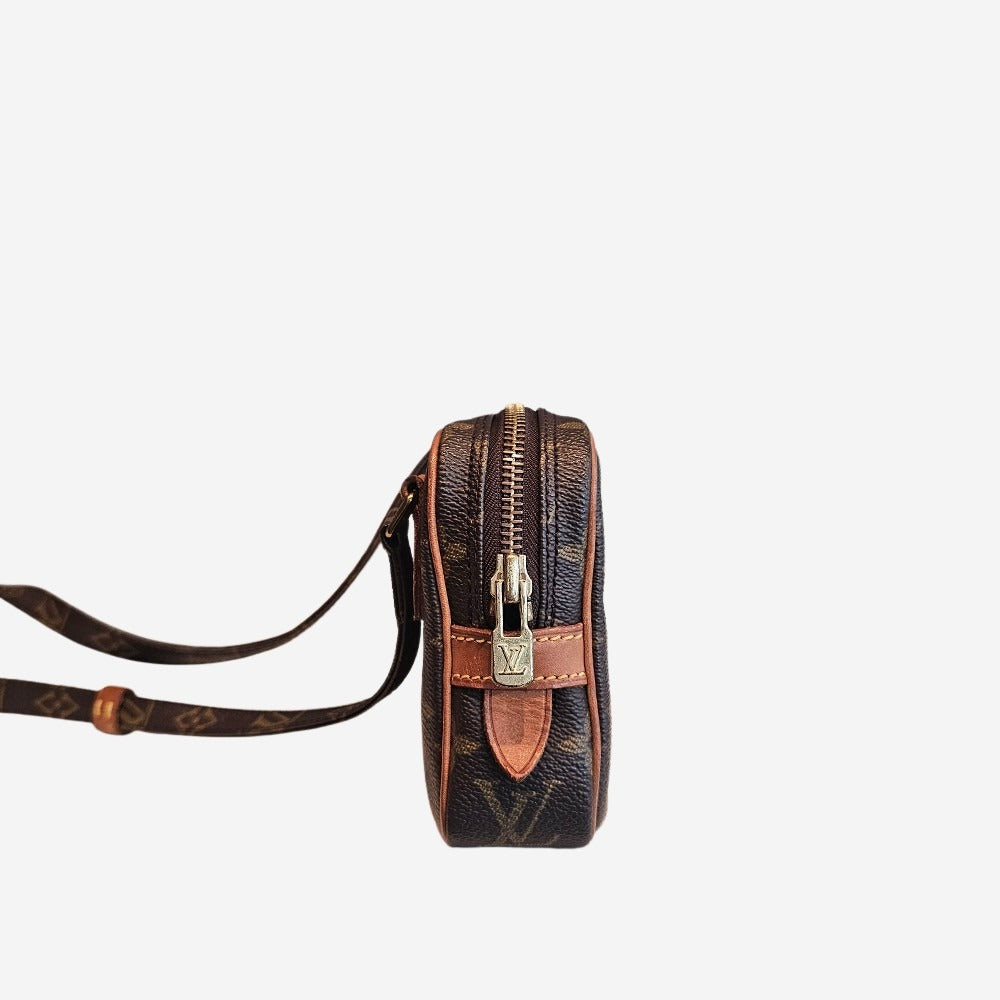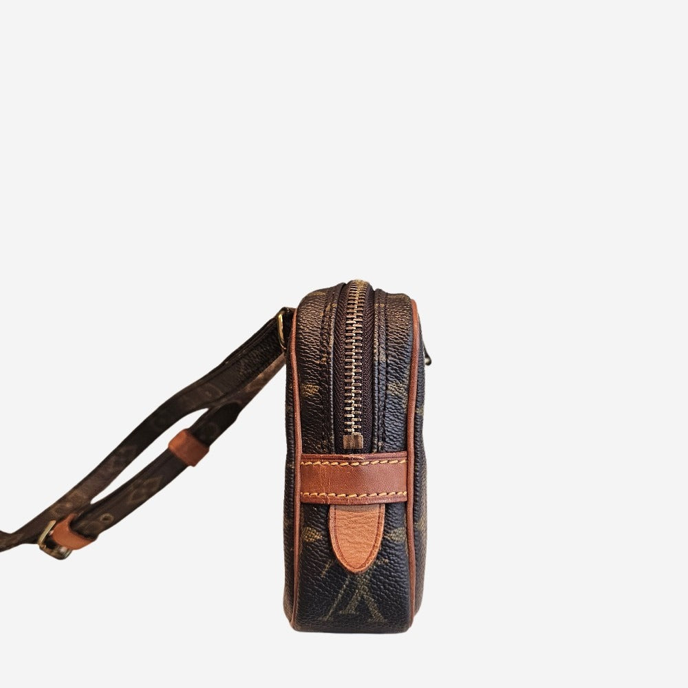 Louis Vuitton Marly er en populær og simpel crossbody taske, som er meget enkel i udtrykket hvad angår både form og detaljer, og er derfor et hit hos mange. Den er fremstillet af Louis Vuittons ikoniske monogram coated canvas med vachetta læderdetaljer og justerbar rem, som også går crossbody. Tasken har et rum, som kan indeholde din telefon, pung, nøgler samt solbriller. Marly er en klassisk crossbody taske, som er et musthave i enhver garderobe.