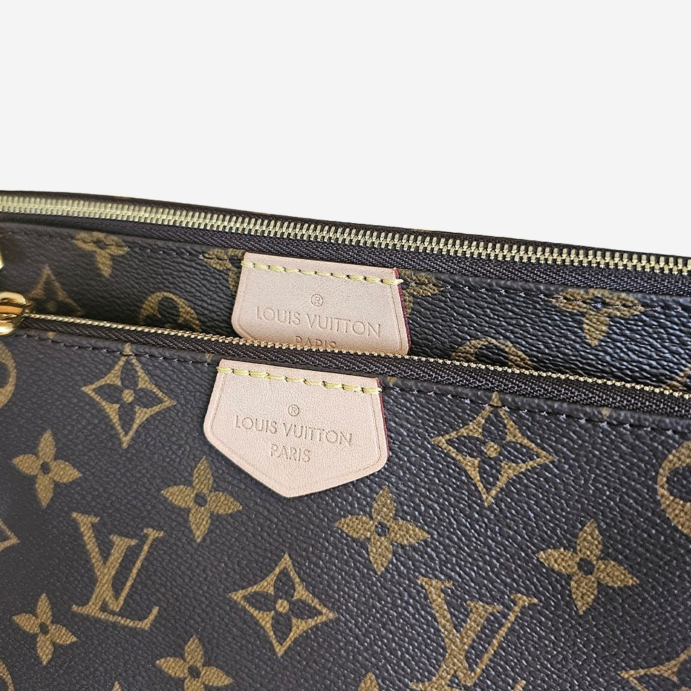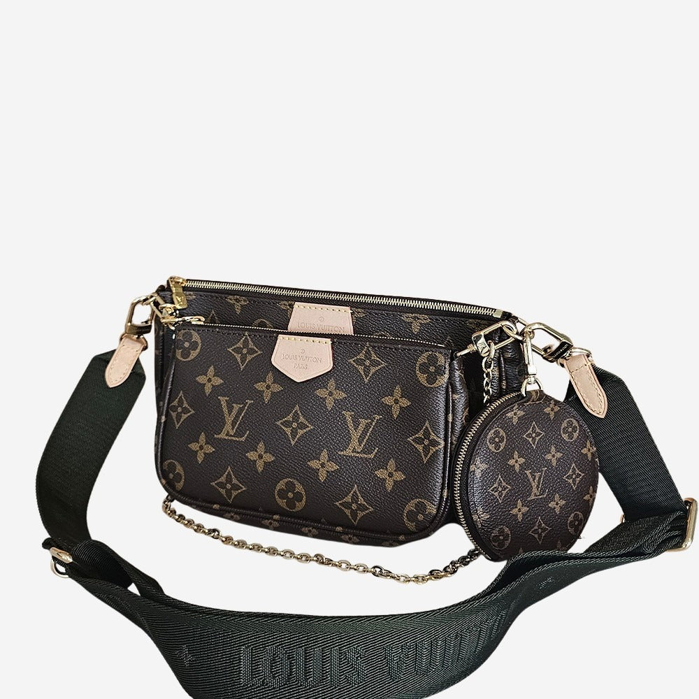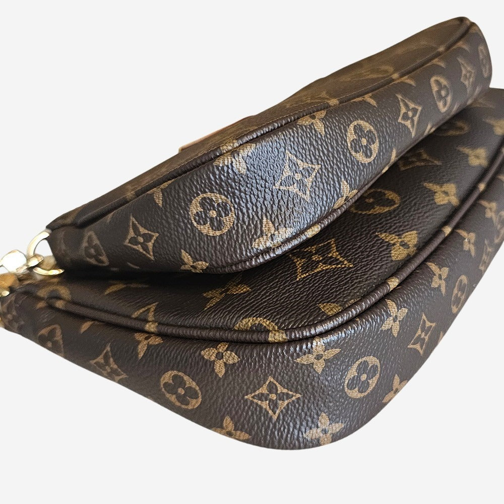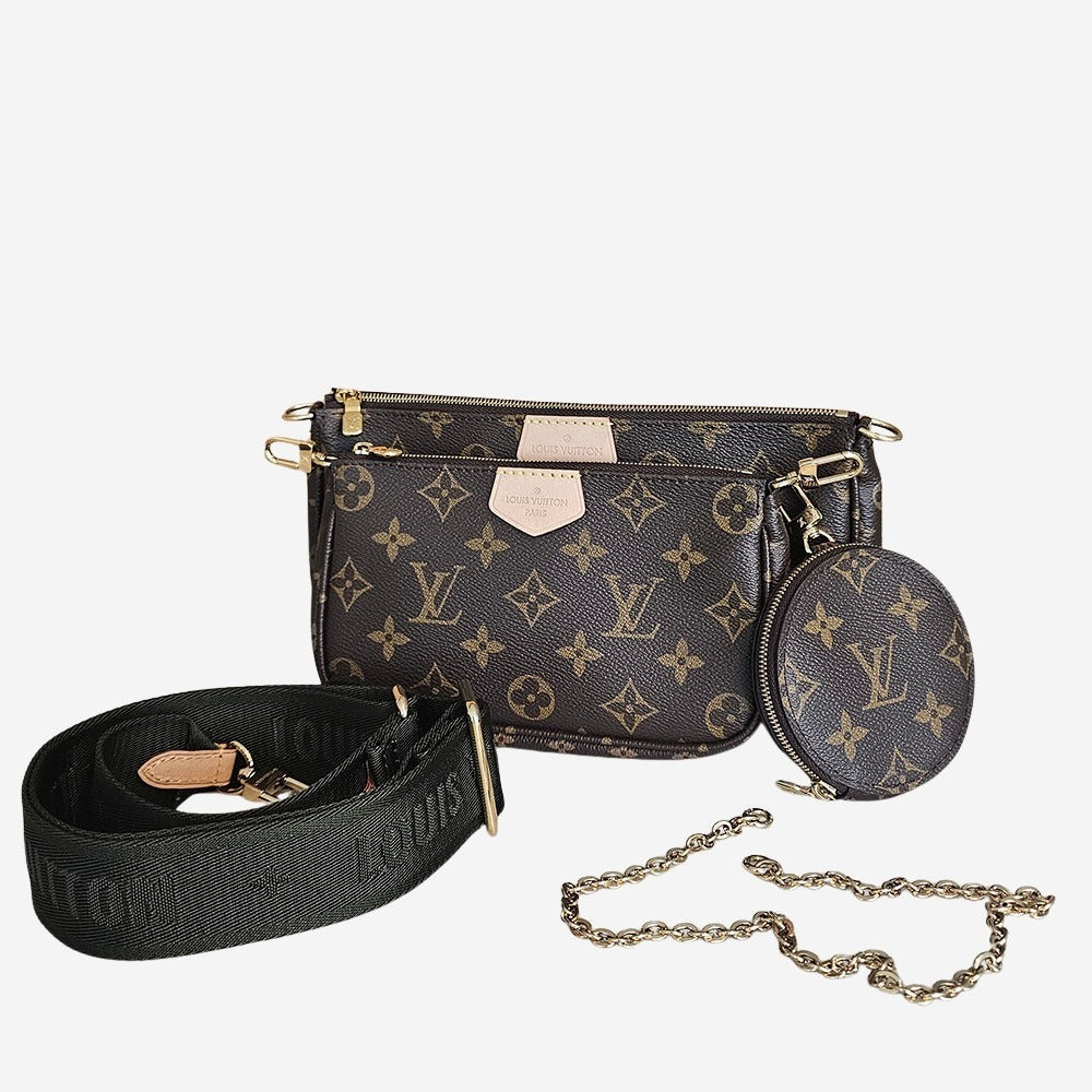 Louis Vuitton lancerede Multi Pochette Accessoires den som en del af deres efterårskollektion i 2019. Tasken blev hurtigt populær på grund af dens alsidighed og moderne design. Den kombinerer en Pochette Accessoires, en Mini Pochette Accessoires og en rund møntpung i ét design, hvilket giver muligheden for, at bære og style taskerne præcis som ønsket. Tasken er fremstillet i Monogram canvas, hvor siderne på de to pochetter samt den ene side af møntpungen, er dekoreret med et mini-Monogram mønster. Tasken har både en aftagelig guldfarvet kæde og en justerbar og aftagelig jacquard-rem hvilket giver mulighed for at bære tasken som crossbody, skuldertaske eller håndtaske. I den store pochette er der et stort hovedrum samt en sliplomme og i både mini pochette og møntpungen finder man ét stort rum.