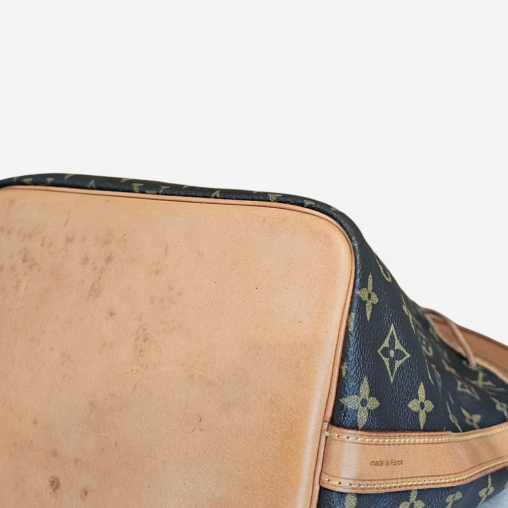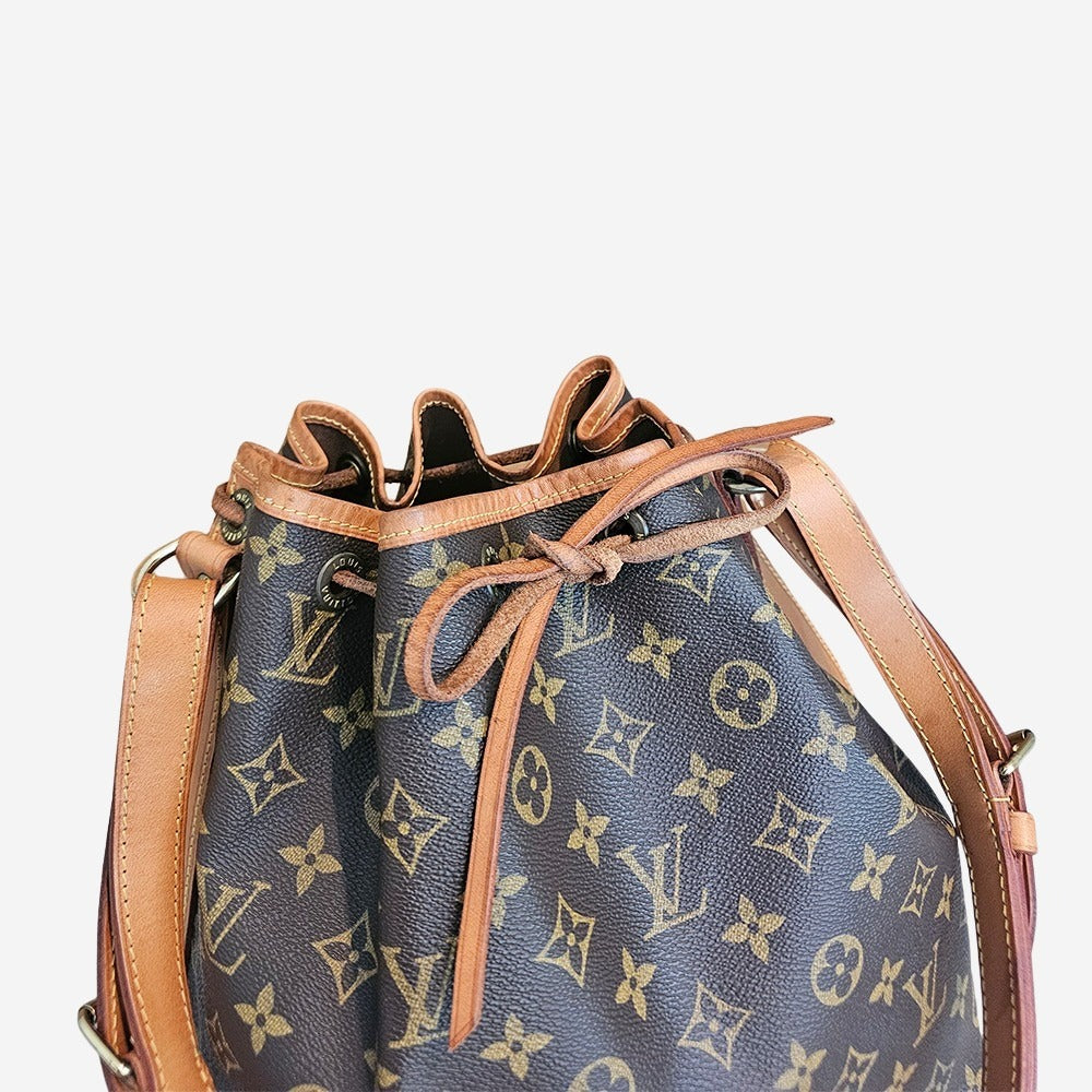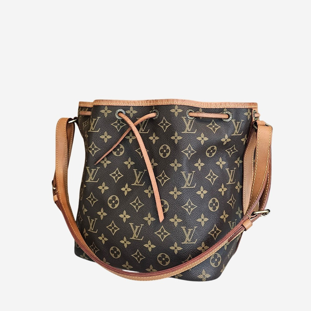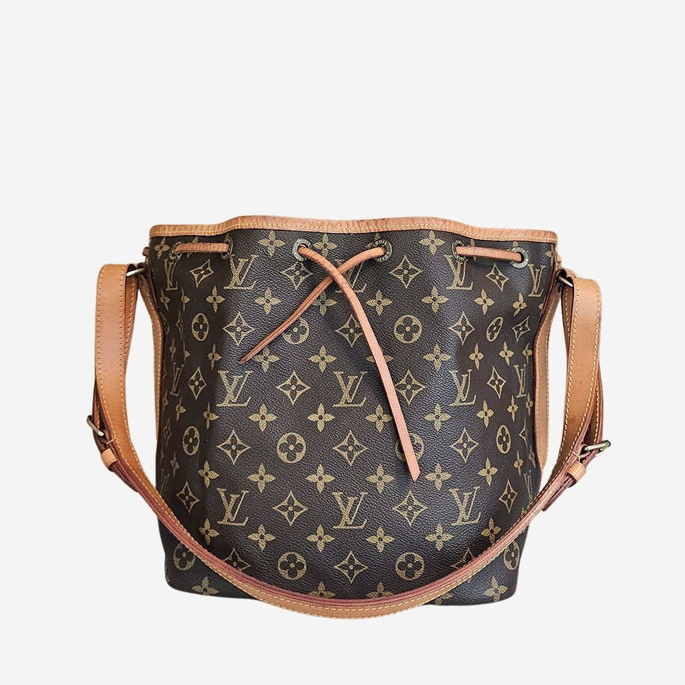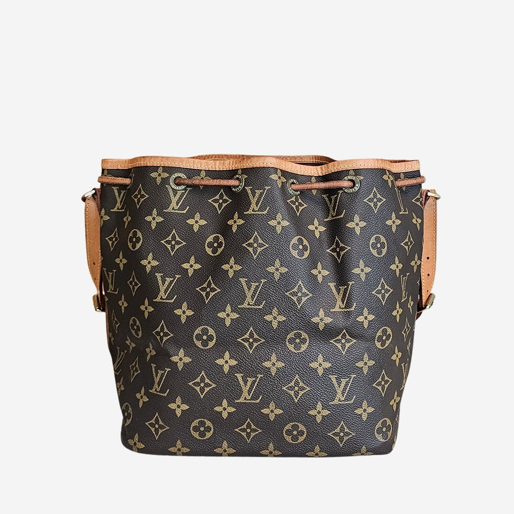Noé blev introduceret i 1932, da en champagneproducent bestilte designet for elegant at kunne transportere champagneflasker. Noé kan stadig i dag indeholde 5 flasker champagne. Petit Noé er familiens lillesøster. Den kan dog ikke indeholde 5 flasker, men rummer stadig alle dine hverdagsfornødenheder. Tasken er fremstillet af Louis Vuittons ikoniske monogram Coated Canvas med Vachetta læderrem, snor og detaljer. Tasken har et stort hovedrum.