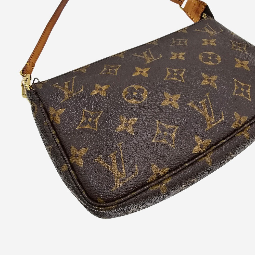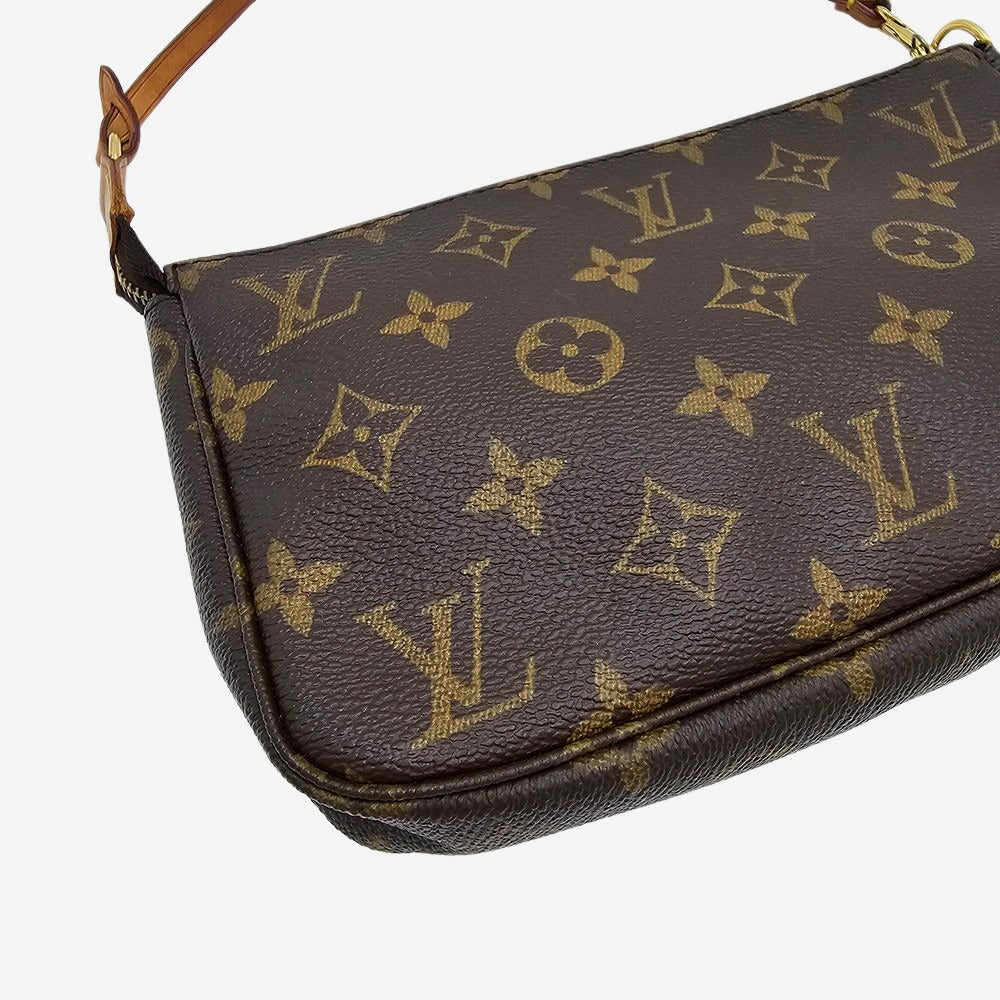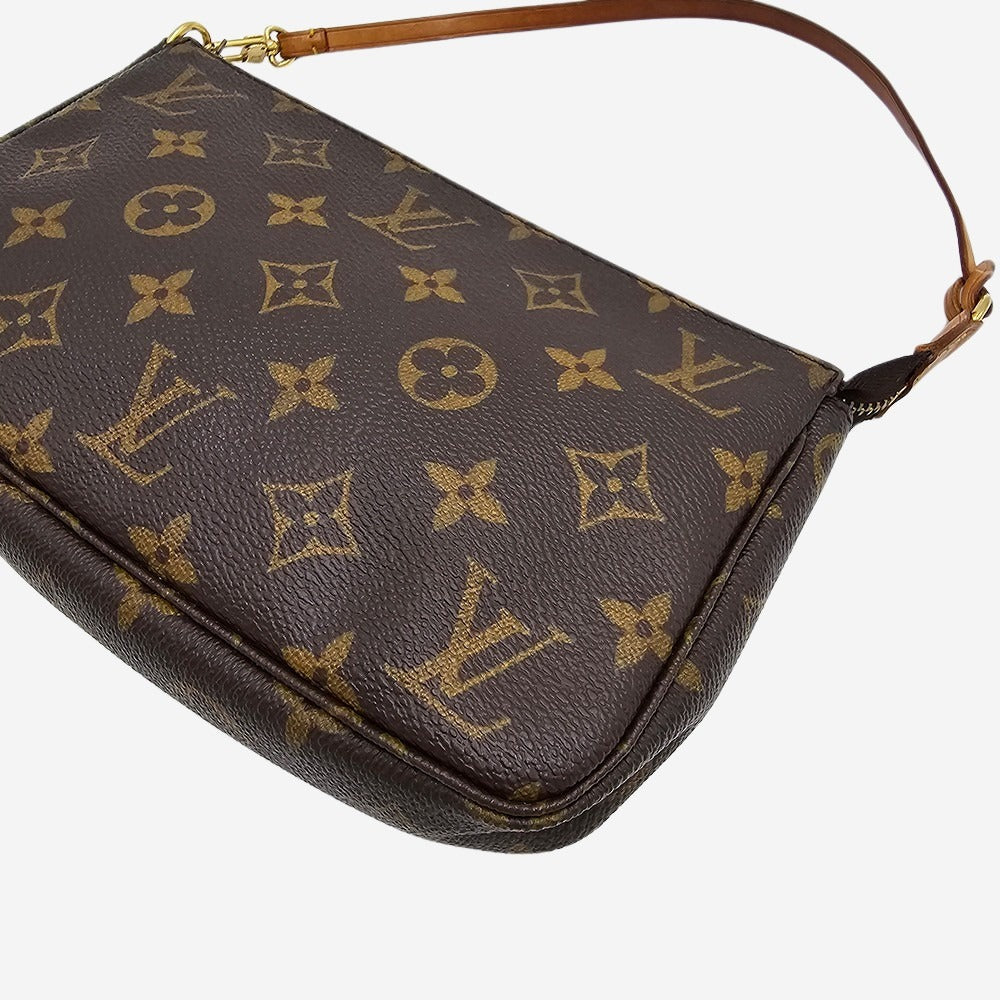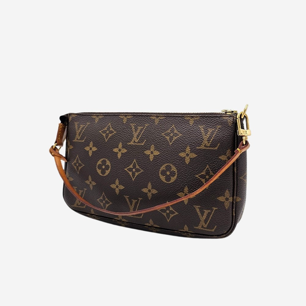 Louis Vuitton Pochette Accessoires er en af husets mest populære modeller. Den er elsket af mange for sin simple silhuet og lille størrelse. Grundet dens popularitet er den fremstillet i utallige prints. Denne model er fremstillet i Monogram Canvas. Pochette Accessoires er en enkel men stilet lille taske som rummer din telefon, pung samt nøgler. Tasken har et rum som bliver lukket med lynlås.