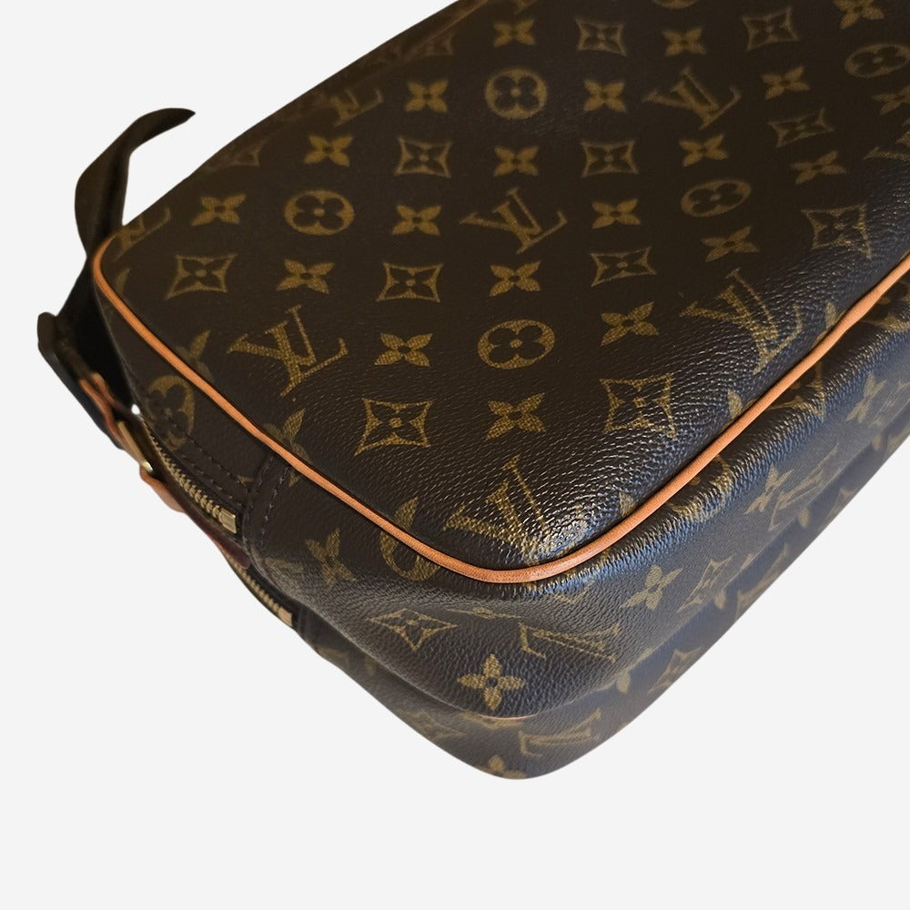 Louis Vuitton Reporter er den ultimative taske, som efter dens str. både kan bruges som hverdagstaske, rejsetaske eller arbejdstaske. Reporteren kommer i 2 forskellige størrelser: PM og GM. Louis Vuitton Reporter PM er den mindste i Reporter familien, mens GM er den største. Reporter PM bliver hurtigt din go-to rejsetaske, da den kan indeholde dine hovedtelefoner, snacks og pas til flyveturen, og guidebøger, kamera og vandflaske til sightseeing. LV Reporter GM er den perfekte taske til arbejde, da den er stor nok til din bærbare computer, dokumenter samt tilbehør. LV Reporter er unisex, som mange af LV-modellerne. Denne reporter er str. PM og er fremstillet af Louis Vuittons ikoniske monogram Coated Canvas.  Den har to store hovedrum, hvoraf det ene indeholder 1 stor sliplomme. Tasken har desuden også en udvendig sliplomme.