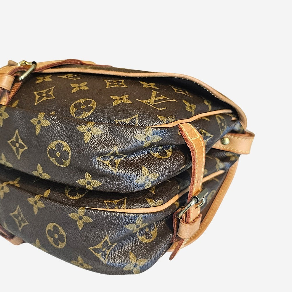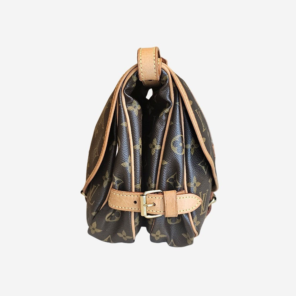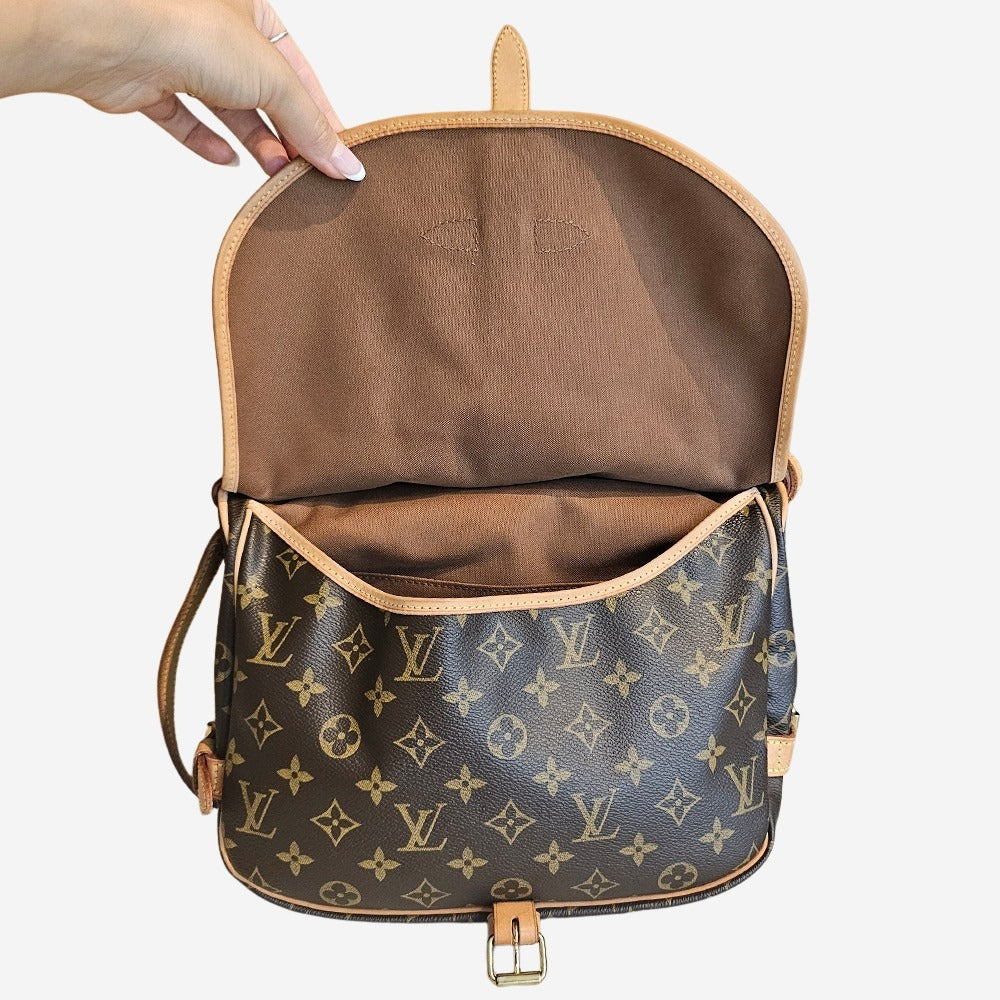 Saumur er inspireret af hestesadlen og blev derfor opkaldt efter en fransk by, som var kendt for deres prestigefyldte rideskole. Den er fremstillet af Louis Vuittons ikoniske monogram Coated Canvas med Vachetta læderrem og detaljer. Denne model er Saumur 30 og er den mindste i familien.  Åben taskens spænder og opdag de to rummelige hovedrum, som passer perfekt til alle dine hverdags nødvendigheder. Saumur 30 er også den perfekte rejsetaske. Pak tablet, pas og guidebog i det ene rum og pung, telefon og nøgler i det andet. Udover de to hovedrum, har tasken desuden en stor sliplomme i det ene rum.