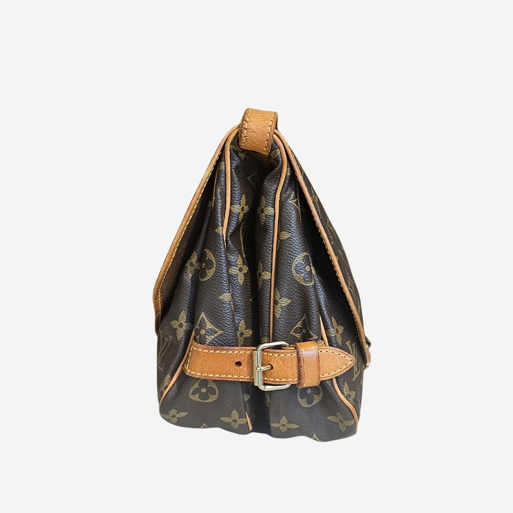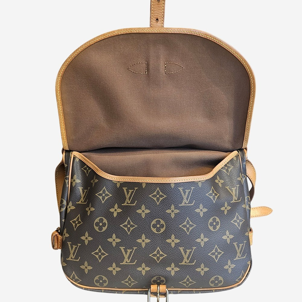 Saumur er inspireret af hestesadlen og blev derfor opkaldt efter en fransk by, som var kendt for deres prestigefyldte rideskole. Den er fremstillet af Louis Vuittons ikoniske monogram Coated Canvas med Vachetta læderrem og detaljer. Denne model er Saumur 30 og er den mindste i familien.  Åben taskens spænder og opdag de to rummelige hovedrum, som passer perfekt til alle dine hverdags nødvendigheder. Saumur 30 er også den perfekte rejsetaske. Pak tablet, pas og guidebog i det ene rum og pung, telefon og nøgler i det andet. Udover de to hovedrum, har tasken desuden en stor sliplomme i det ene rum.