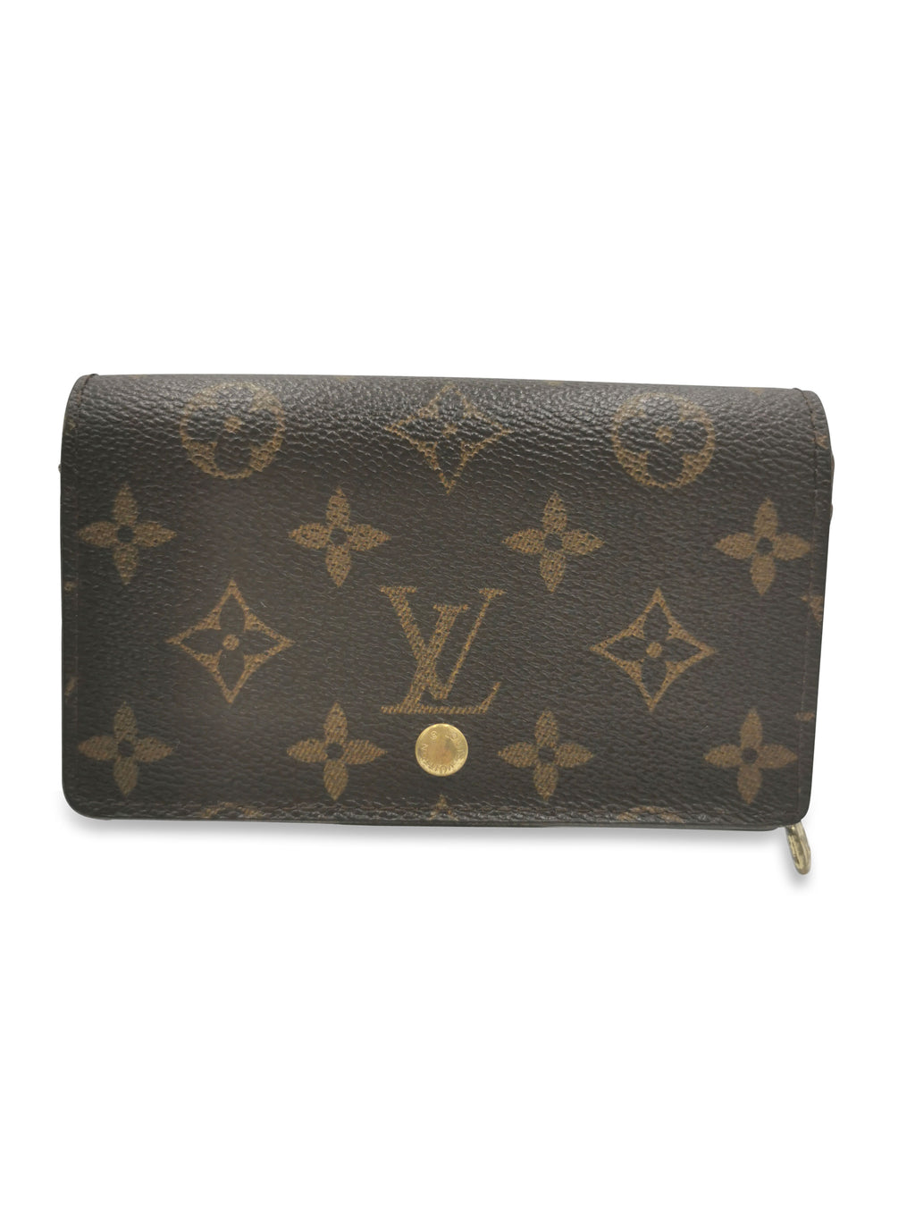 Denne rummelige pung fra Louis Vuitton er fremstillet af deres ikoniske monogram coated canvas. Pungen har to møntrum som lukkes med lynlås. Derudover er der plads til kort, sedler samt yderligere en lomme. Louis Vuitton Tresor lukkes med trykknap.
