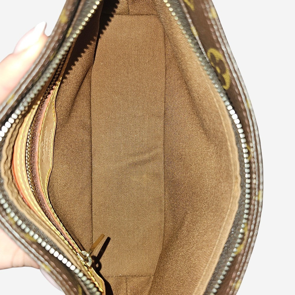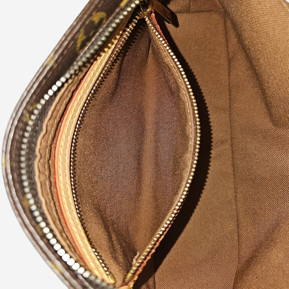 Denne yndige Louis Vuitton Trotteur taske er perfekt til både dag og nat og stor nok til at rumme alle dine must-haves, såsom mobiltelefon, pung, nøgler mm. Den har en lang justerbar skulderrem og tasken kan derfor også bæres som crossbody. Den fremstillet i husets populære monogram canvas med vachetta læderdetaljer. Tasken har et hovedrum som bliver lukket med lynlås. Derudover har den en indvendig lynlåslomme.