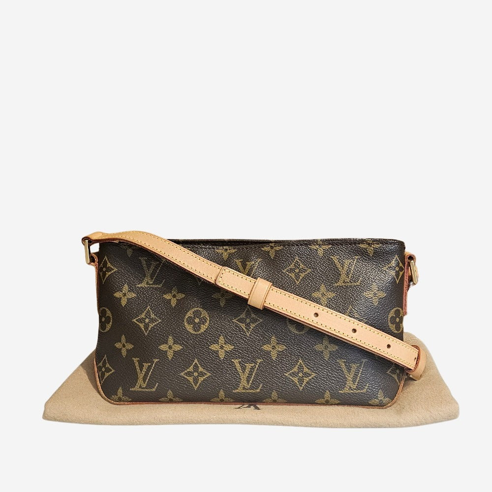 Denne yndige Louis Vuitton Trotteur taske er perfekt til både dag og nat og stor nok til at rumme alle dine must-haves, såsom mobiltelefon, pung, nøgler mm. Den har en lang justerbar skulderrem og tasken kan derfor også bæres som crossbody. Den fremstillet i husets populære monogram canvas med vachetta læderdetaljer. Tasken har et hovedrum som bliver lukket med lynlås. Derudover har den en indvendig lynlåslomme.