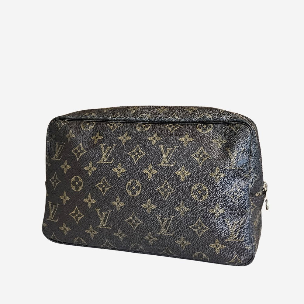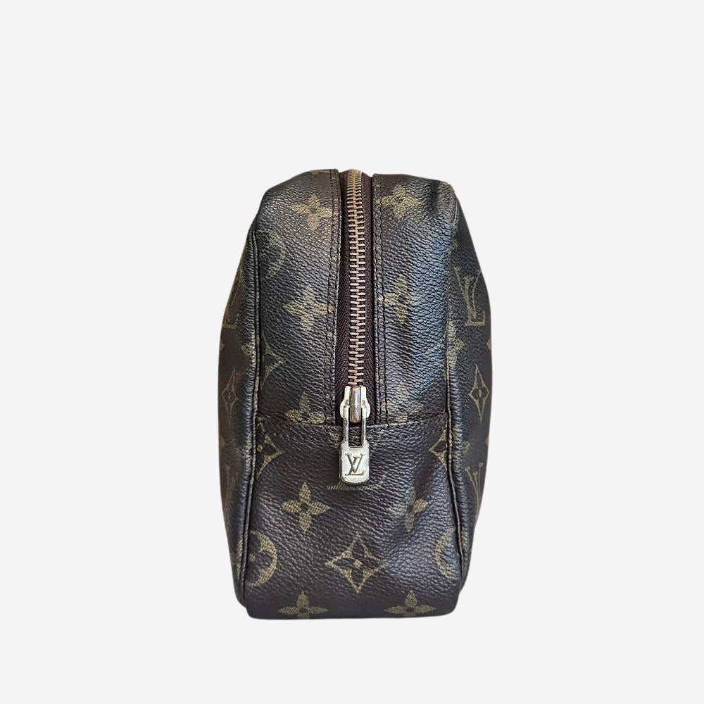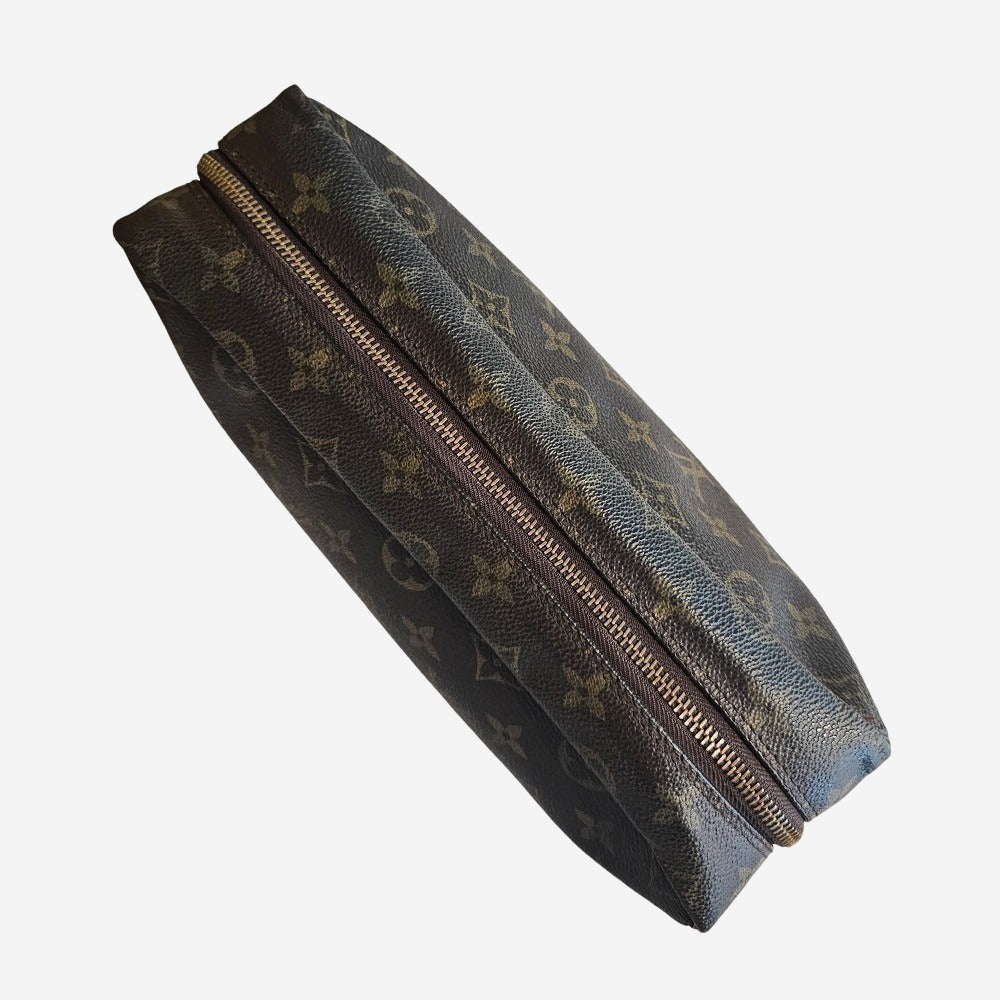 Louis Vuitton udgav første gang deres produktserie af toilettasker i midten af 1980. Siden har der været flere forskellige modeller samt genudgivelser af den populære LV toilettaske. Den er fremstillet i det klassiske monogram canvas og med fine guld detaljer. Indvendigt er der en beige foring og samt en praktisk lomme. Hvad end toilettasken skal bruges som din go-to i hverdagen, som clutch eller til dine rejser så er det den perfekte accessory.