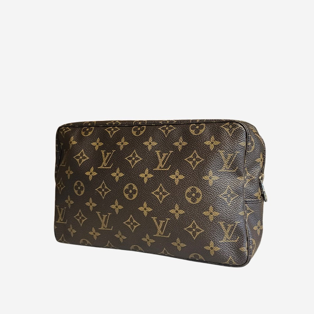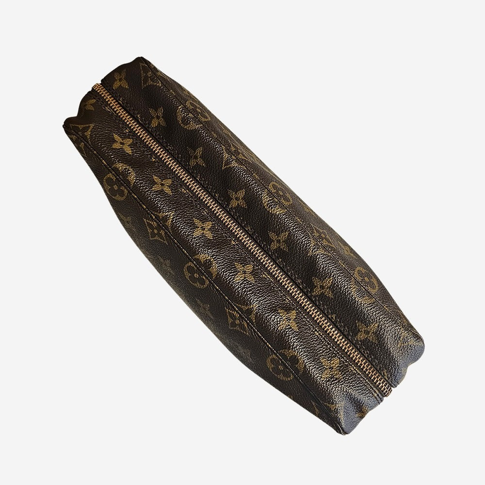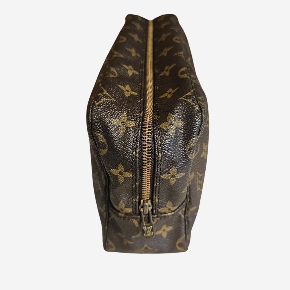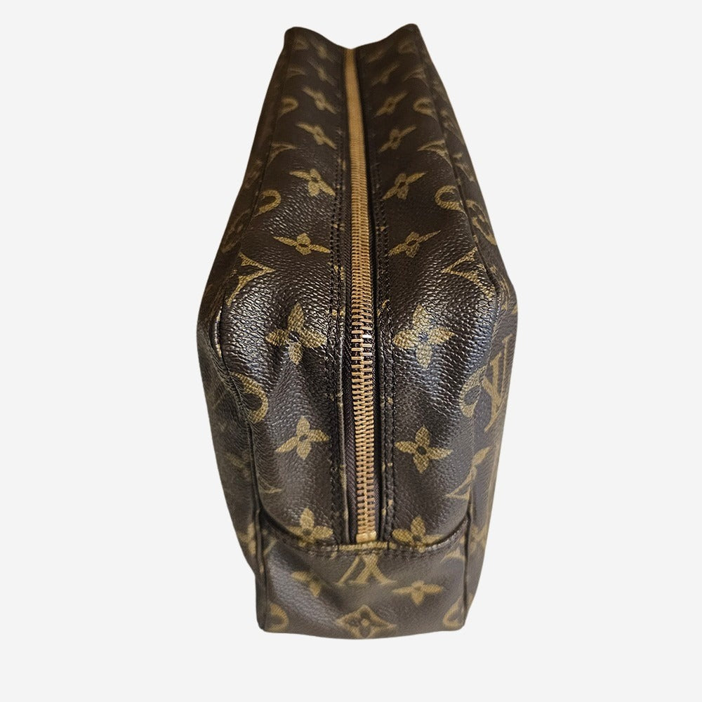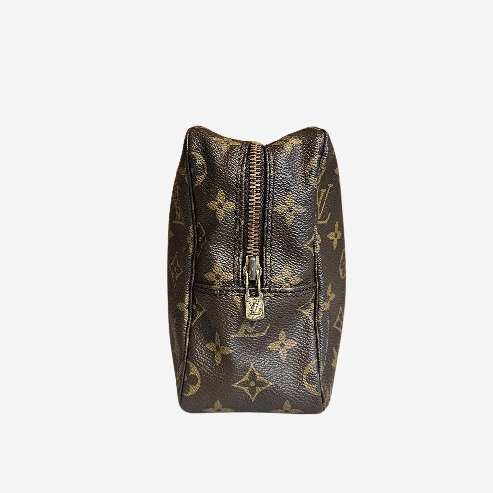 Louis Vuitton udgav første gang deres produktserie af toilettasker i midten af 1980. Siden har der været flere forskellige modeller samt genudgivelser af den populære LV toilettaske. Den er fremstillet i det klassiske monogram canvas og med fine guld detaljer. Indvendigt er der en beige foring og samt en praktisk lomme. Hvad end toilettasken skal bruges som din go-to i hverdagen, som clutch eller til dine rejser så er det den perfekte accessory.