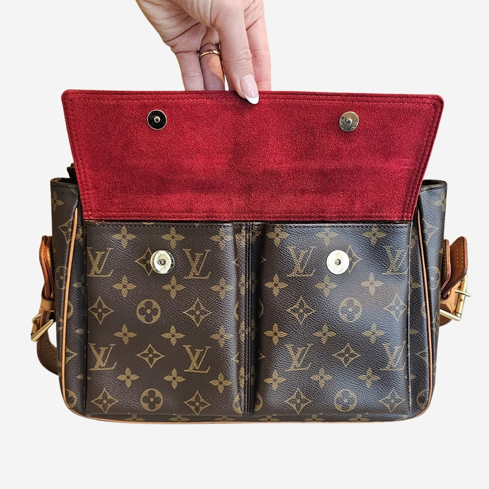 Louis Vuittons Viva Cite taske findes i 3 str. PM, MM og GM. Denne Viva Cite er str. GM og dermed den største i familien. Den er fremstillet af Louis Vuittons ikoniske Monogram Coated Canvas med vachetta læderdetaljer samt skulderrem. Tasken har et rummeligt hovedrum, som kan indeholde både vandflaske, pung, telefon, nøgler, solbriller mm. Derudover har den to indvendige lommer samt to udvendige på front, som giver tasken sit smukke udseende.