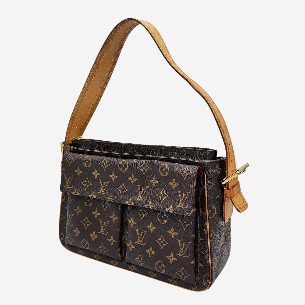 Louis Vuittons Viva Cite taske findes i 3 str. PM, MM og GM. Denne Viva Cite er str. GM og dermed den største i familien. Den er fremstillet af Louis Vuittons ikoniske Monogram Coated Canvas med vachetta læderdetaljer samt skulderrem. Tasken har et rummeligt hovedrum, som kan indeholde både vandflaske, pung, telefon, nøgler, solbriller mm. Derudover har den to indvendige lommer samt to udvendige på front, som giver tasken sit smukke udseende.