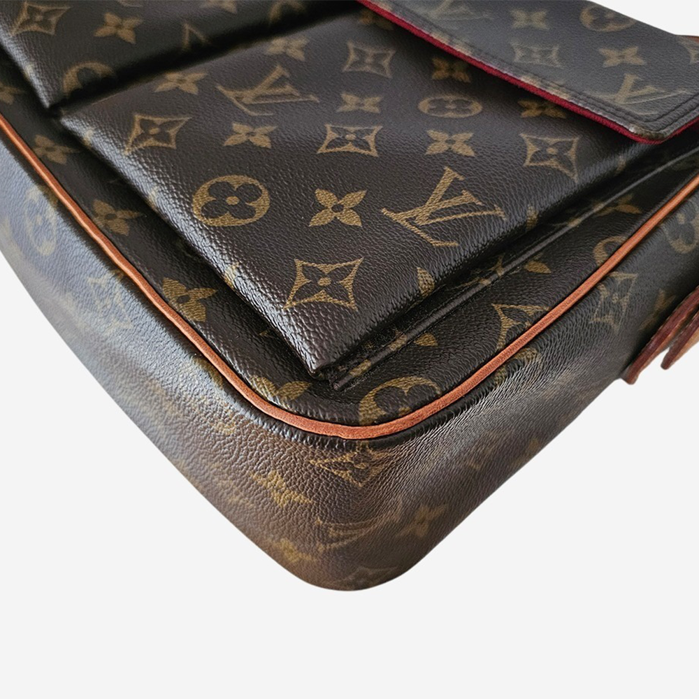Louis Vuittons Viva Cite taske findes i 3 str. PM, MM og GM. Denne Viva Cite er str. GM og dermed den største i familien. Den er fremstillet af Louis Vuittons ikoniske Monogram Coated Canvas med vachetta læderdetaljer samt skulderrem. Tasken har et rummeligt hovedrum, som kan indeholde både vandflaske, pung, telefon, nøgler, solbriller mm. Derudover har den to indvendige lommer samt to udvendige på front, som giver tasken sit smukke udseende.