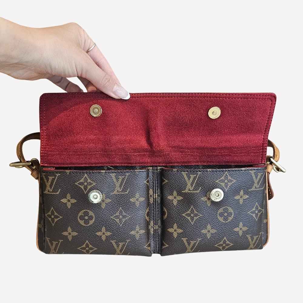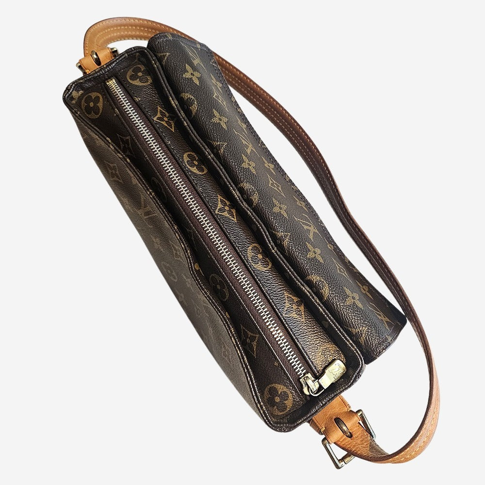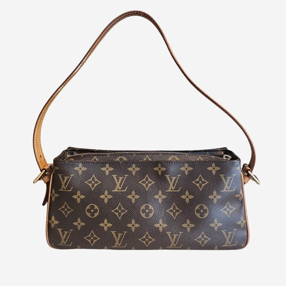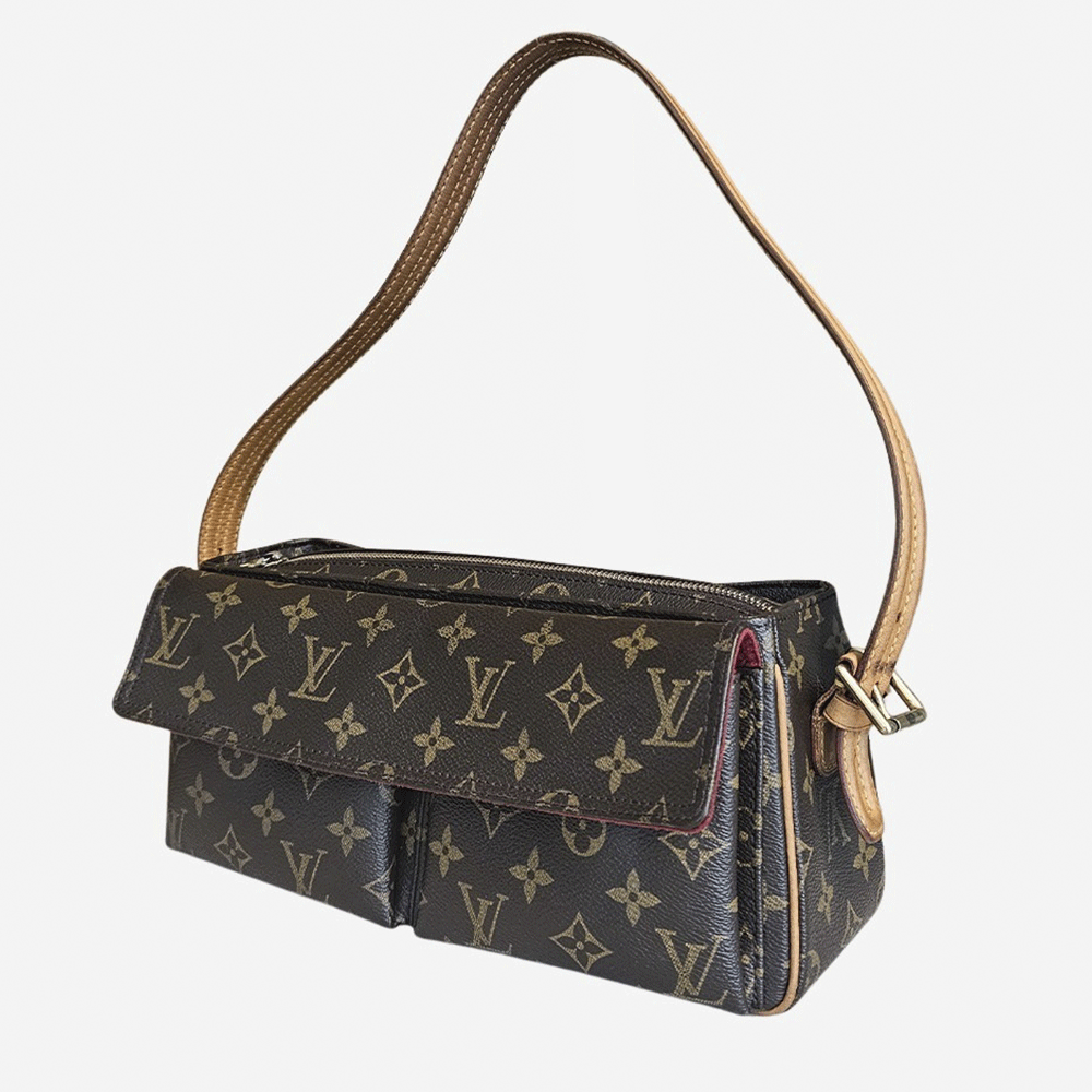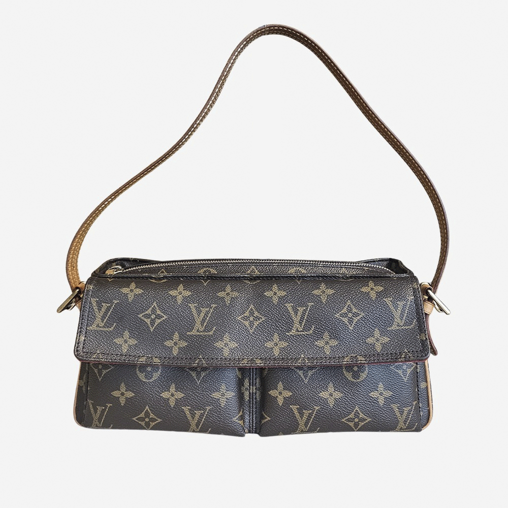 Louis Vuittons Viva Cite taske findes i 3 str. PM, MM og GM. Denne Viva Cite er str. MM og er dermed den mellemste i familien. Den er fremstillet af Louis Vuittons ikoniske Monogram Coated Canvas med vachetta læderdetaljer samt skulderrem. Tasken har et rummeligt hovedrum, som kan indeholde både pung, telefon, nøgler, solbriller mm. Derudover har den to indvendige lommer samt to udvendige på front, som giver tasken sit smukke udseende.