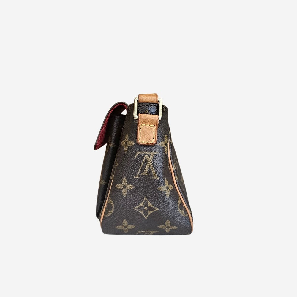 Louis Vuittons Viva Cite taske findes i 3 str. PM, MM og GM. Denne Viva Cite er str. PM og er dermed den mindste i familien. Den er fremstillet af Louis Vuittons ikoniske Monogram Coated Canvas med vachetta læderdetaljer samt skulderrem. Tasken har et hovedrum, som kan indeholde både pung, telefon, nøgler mm. Derudover har den en udvendig lomme som giver tasken sit smukke udseende.