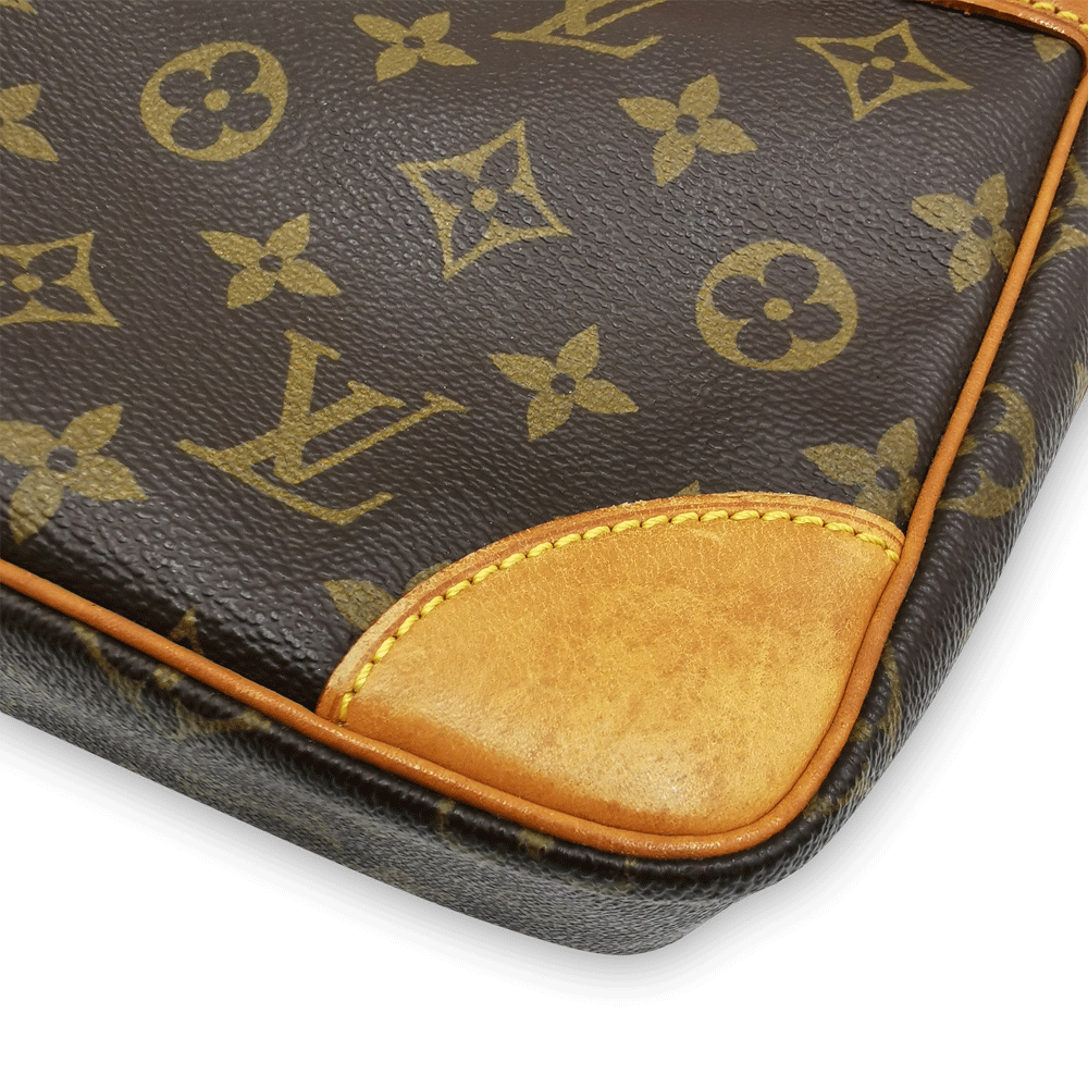 Trocadéro findes i 3 str. 23, 27 og 30. Disse tal indikerer størrelsen på taskerne. Denne Trocadéro er den største i familien og er fremstillet af Louis Vuittons ikoniske Monogram Coated Canvas med vachetta læderdetaljer samt skulderrem. Tasken har et rummeligt hovedrum, som kan indeholde både tablet, pung, telefon, nøgler samt solbriller. Derudover har Trocadéro en indvendig lynlåslomme samt en udvendig sliplomme. Trocadéro er en klassisk crossbody som er et musthave i enhver garderobe.