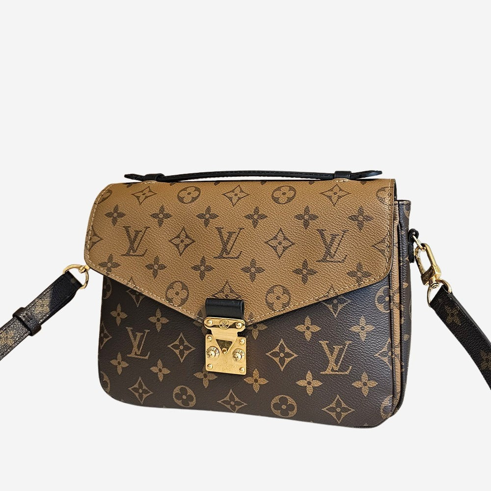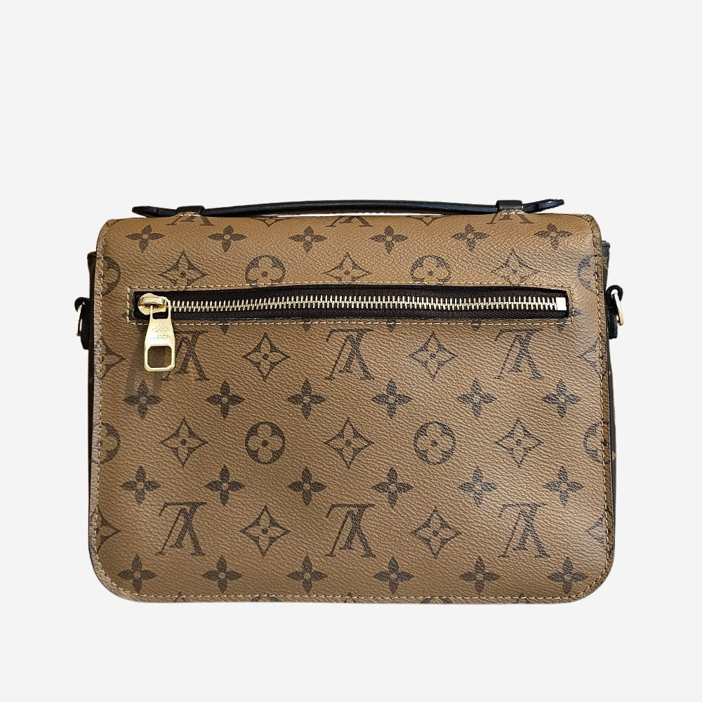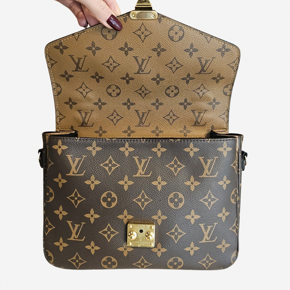 Louis Vuitton Pochette Metis er en af husets mest populære modeller og er den perfekte følgesvend til hverdag, da den rummer alt det som du har brug for. Med sin firkantede form og klassiske udtryk, er det en tidløs tilføjelse til garderoben. Denne Metis er fremstillet af det ikoniske Monogram Reverse Canvas som giver tasken et lille twist. Tasken er desuden med sorte læderdetaljer samt guld hardware. Tasken kan bruges crossbody og indeholder 3 indvendige rum samt 1 udvendig lynlåslomme.