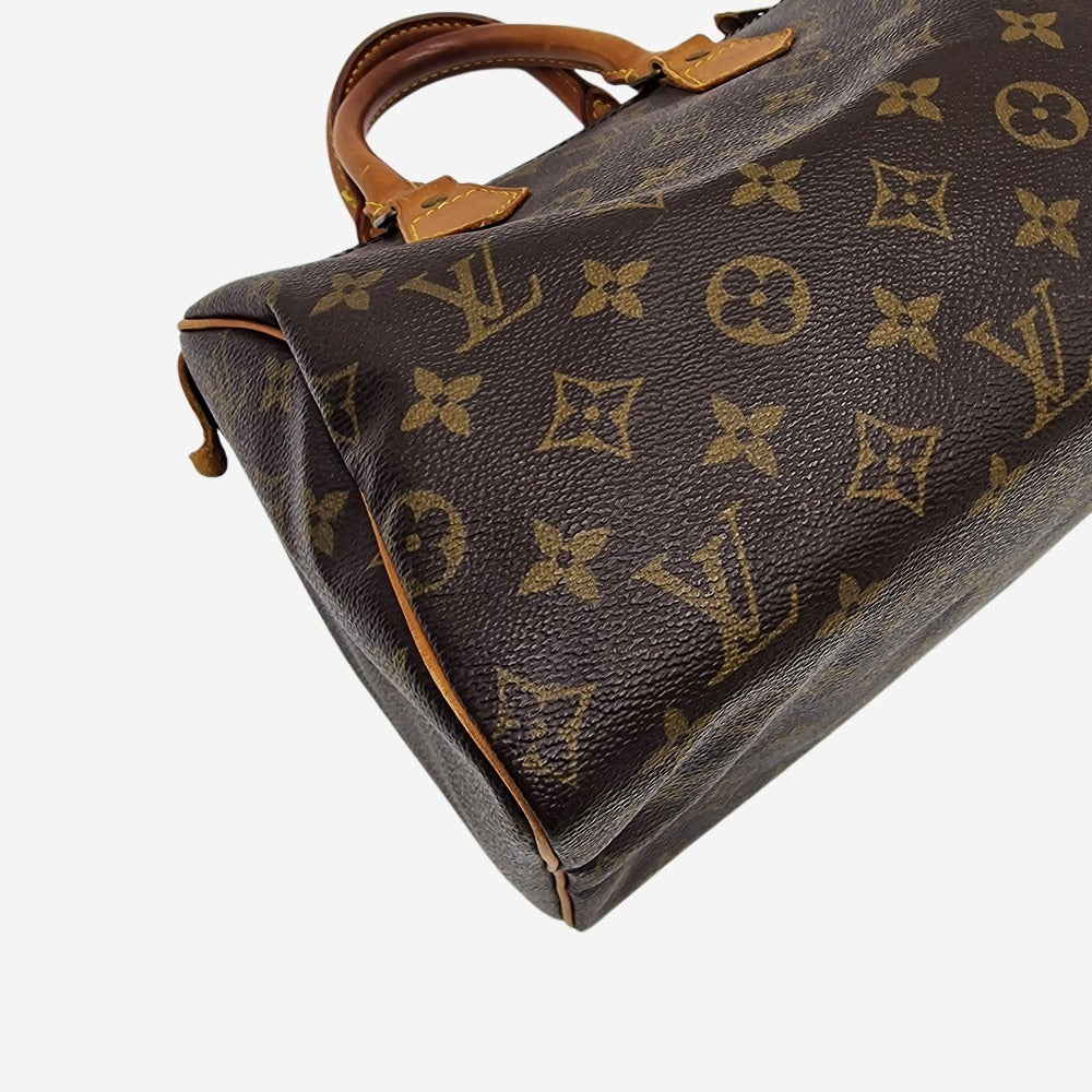 Louis Vuitton Speedy blev lanceret i 1930 og blev designet ud fra Keepall, for at tilbyde en mere uformel version af mærkets klassiske rejsetaske. Speedy var den første håndtaske introduceret af det franske modehus, der var designet til hverdagsbrug. Den findes i flere str. og er igennem årene lavet i utallige prints. Denne Speedy er str. 25 som henviser til længden på tasken. Den er lavet af monogram canvas og har to håndtag lavet i vachetta læder. Speedy 25 er den perfekte hverdagstaske. Ekstremt let og stor nok til at bære alle dine hverdagsnødvendigheder, såsom mobil, pung, solbriller, vandflaske mm. Meget stilfuld måde at bære dine mest væsentlige ting på.