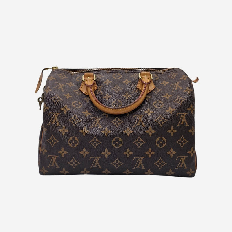 Louis Vuitton Speedy blev lanceret i 1930 og blev designet ud fra Keepall, for at tilbyde en mere uformel version af mærkets klassiske rejsetaske. Speedy var den første håndtaske introduceret af det franske modehus, der var designet til hverdagsbrug. Den findes i flere str. og er igennem årene lavet i utallige prints. Denne Speedy er str. 30 som henviser til længden på tasken. Den er lavet af monogram canvas og har to håndtag lavet i vachetta læder. Speedy 30 er den perfekte hverdagstaske. Ekstremt let og stor nok til at bære alle dine hverdagsnødvendigheder, såsom mobil, pung, solbriller, vandflaske mm. Meget stilfuld måde at bære dine mest væsentlige ting på.