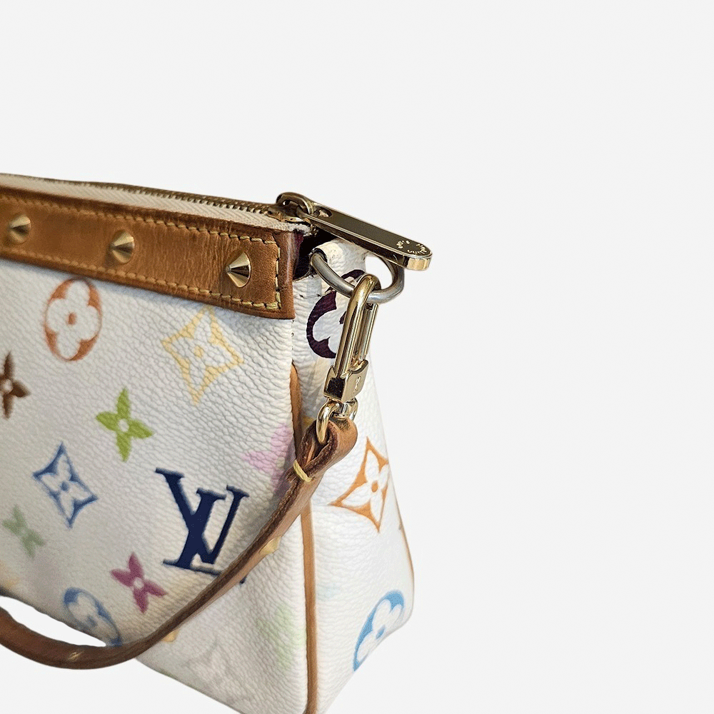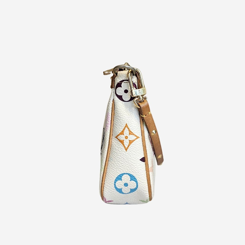 Louis Vuitton Pochette Accessoires er en af husets mest populære modeller. Den er elsket af mange for sin simple silhuet og lille størrelse. Grundet dens popularitet er den fremstillet i utallige prints. Denne model er det berygtede samarbejde mellem Louis Vuitton og Takashi Murakami som begyndte i 2002 på foranledning af den daværende kreative direktør, Marc Jacobs. Murakami, en ikonisk kunstner baseret i Japan, bragte sin fantasifulde og farverige æstetik til det berømte modehus. Første kollektion udkom forår/sommer 2003 og var den smukke multicolor kollektion, som denne pochette accessoires var en del af. Efter genudgivelsen i januar 2025 har der været stor efterspørgsel på den første udgivelse af modellen. Pochette Accessoires er en enkel men stilet lille taske som rummer din telefon, pung samt nøgler. Tasken har et rum som bliver lukket med lynlås.