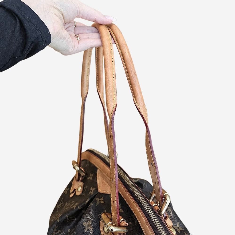 Louis Vuitton's Tivoli er opkaldt efter den smukke italienske by Tivoli. Modellen udgik i 2014 og har sidenhen været savnet af mange Louis Vuitton elskere. Tasken fåes i to str. PM og GM. Denne er en GM og er dermed den største i familien. Tivoli er fremstillet af Louis Vuittons ikoniske monogram Coated Canvas med Vachetta læder og guld detaljer. Tasken har et stort hovedrum med plads til computer, telefon, pung, nøgler, vandflaske, madpakke mm. Der er desuden tre indvendige sliplommer. Denne taske er helt perfekt til både hverdag, skole eller arbejde.
