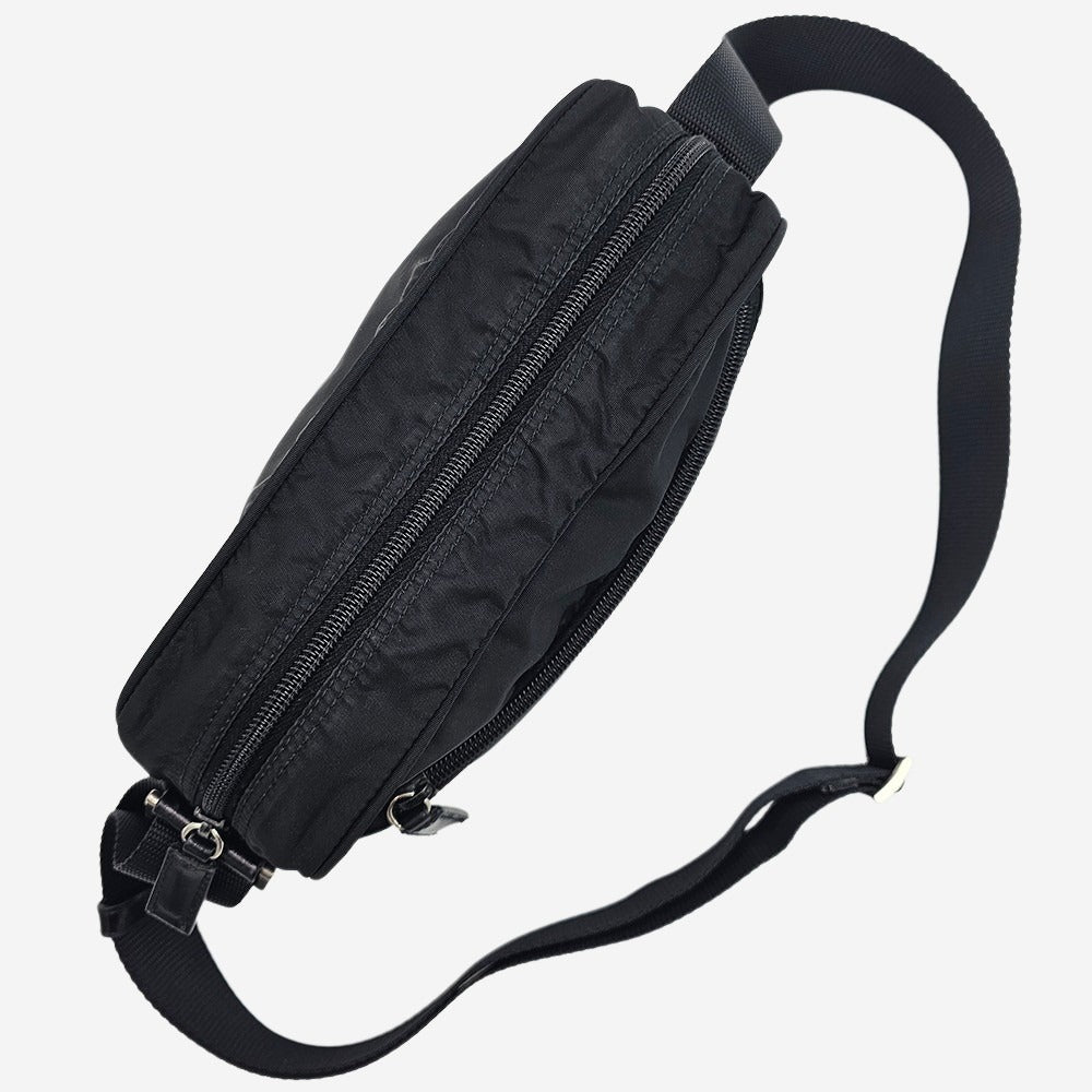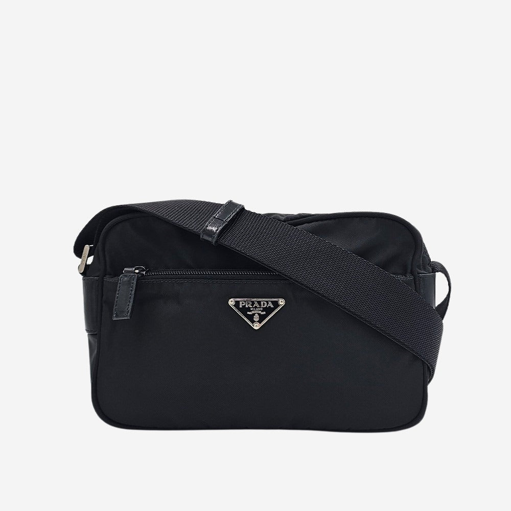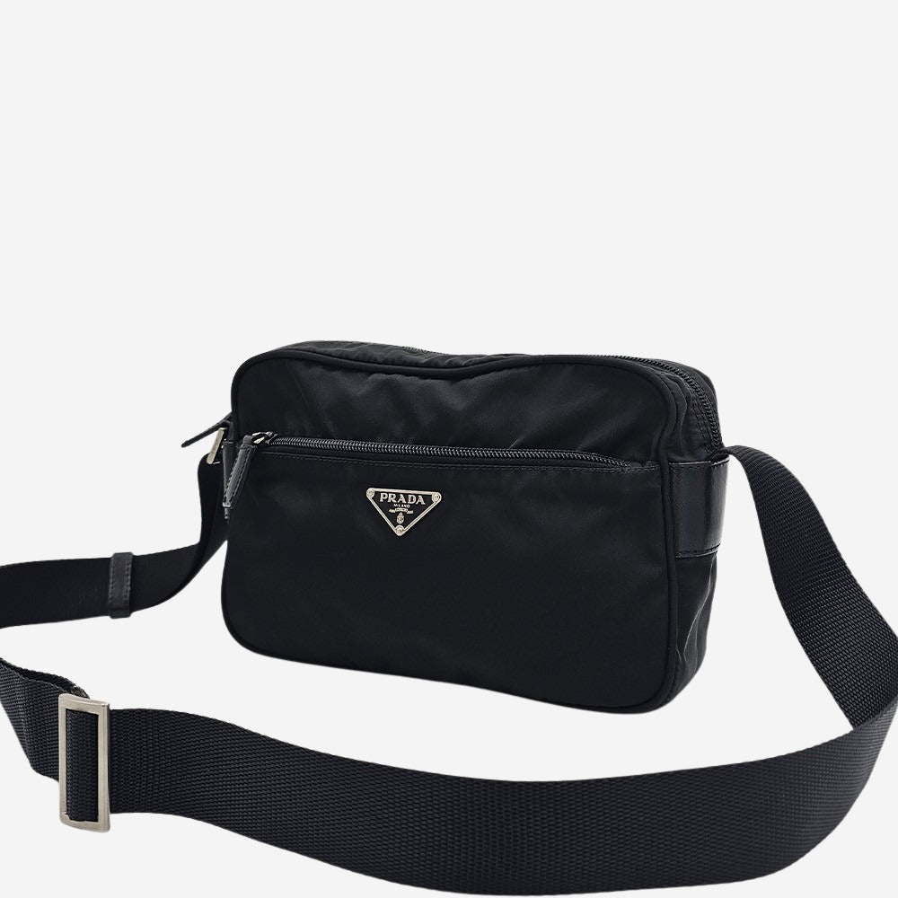 Inspireret af militærets faldskærme, begyndte Prada at arbejde med nylon i 1984. Efter Prada´s relancering af nylon-taskerne, er de gamle vintage tasker blevet et hit igen. Denne taske er fremstillet i nylon og er udsmykket med deres berømte mærkevarelogo. Taskens hovedrum lukkes med lynlås, og kan indeholde pung, telefon, nøgler samt solbriller. Dette rum har yderligere en indvendig lynlåslomme. Tasken har desuden et udvendigt rum på front som også lukkes med lynlås. Tasken er ideel for alle og kan justeres i stofremmen, så den kan bæres både som skuldertaske og crossbody. Tasken er unisex og er fantastisk til både mænd og kvinder.