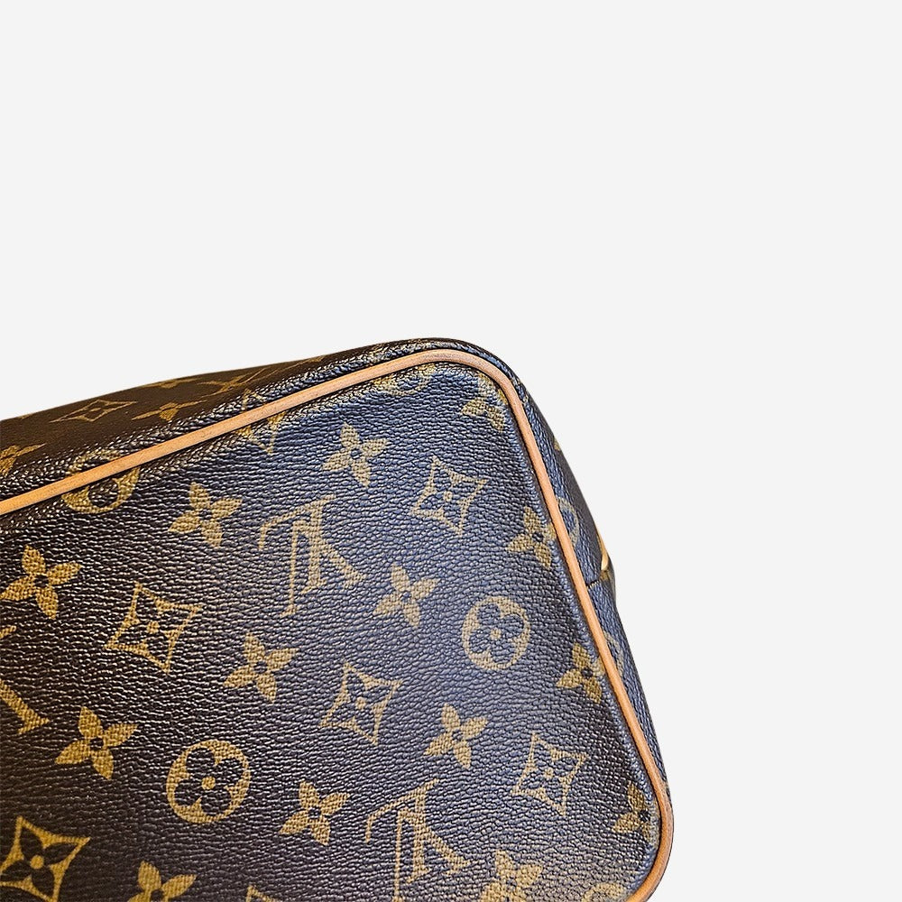 Louis Vuitton's Palermo kommer i to forskellige størrelser, PM og GM. Denne er en PM og dermed den mindste af de to. Tasken er fremstillet i LV's klassiske monogram canvas og er med vachetta læderremme samt smukke guld detaljer. Tasken har et stort hovedrum med plads til alt det gængse samt til en 13" computer. Tasken har desuden 4 sliplommer med plads til nøgler, solbriller, pung, telefon, kuglepinde mm. Tasken er perfekt til arbejdet og skolen.