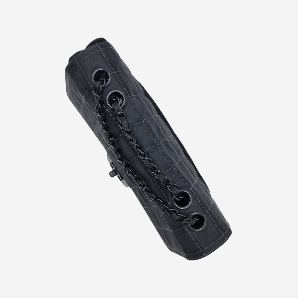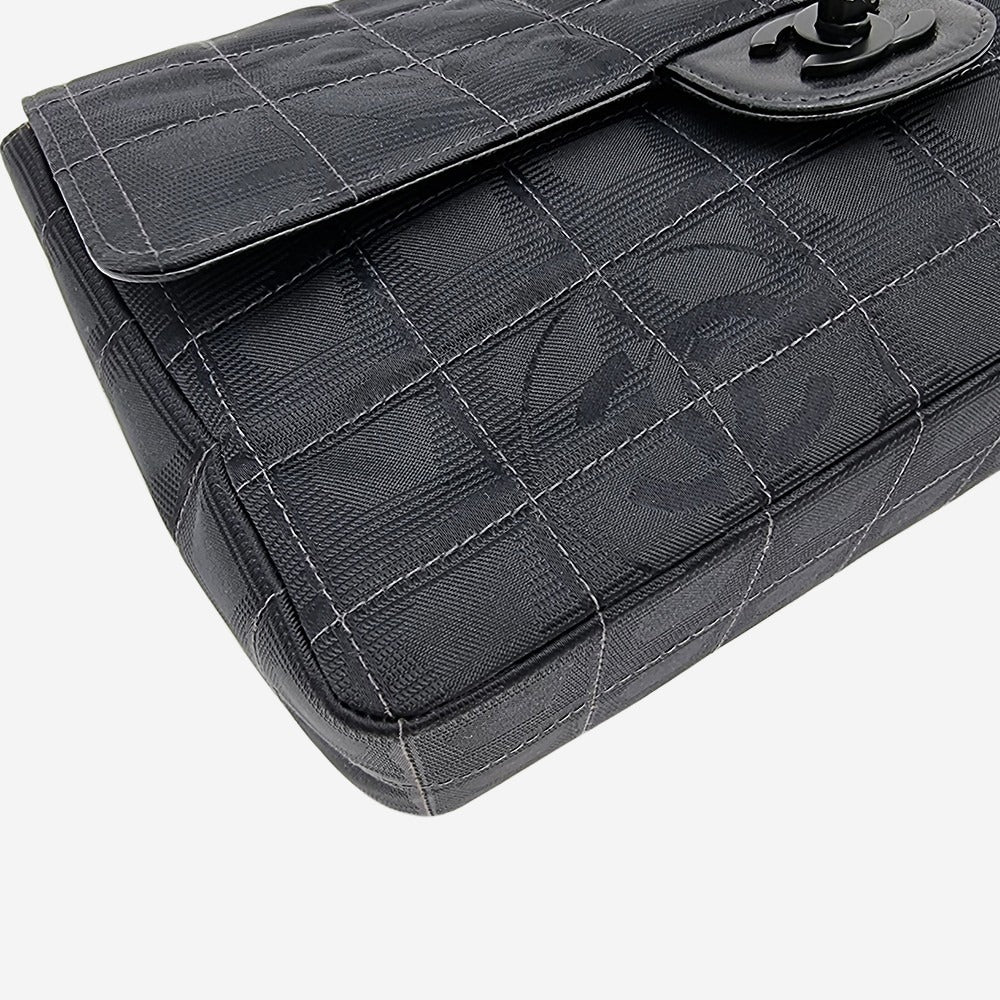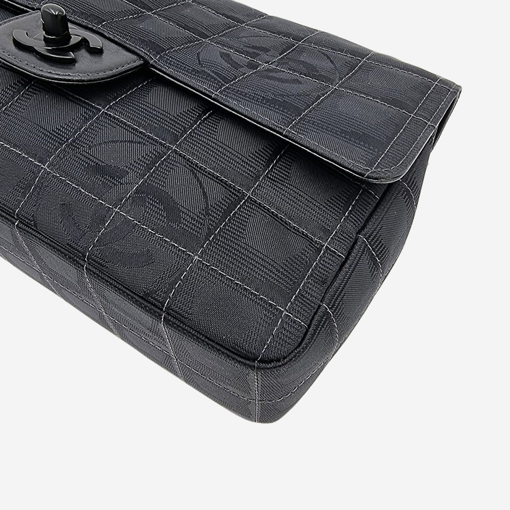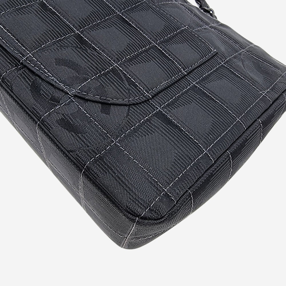 Chanels oprindelige "Travel line" kollektion blev udgivet i 1990’erne. I 2002 relancerede de serien og kaldte den for "New Travel Line". Alle modellerne i denne serie er kendetegnet ved deres lethed og materialet i nylon som er printet med CC-logoet. Denne sjældne og cool model minder utroligt meget om den klassiske single flap bag, hvori den store forskel ligger indvendigt i rumfordelingen. Hvor den klassiske flap kun har sliplommer, har denne model også en praktisk lynlåslomme. Hovedrummet kan indeholde alle dine hverdagsfornødenheder såsom pung, telefon, solbriller samt nøgler.