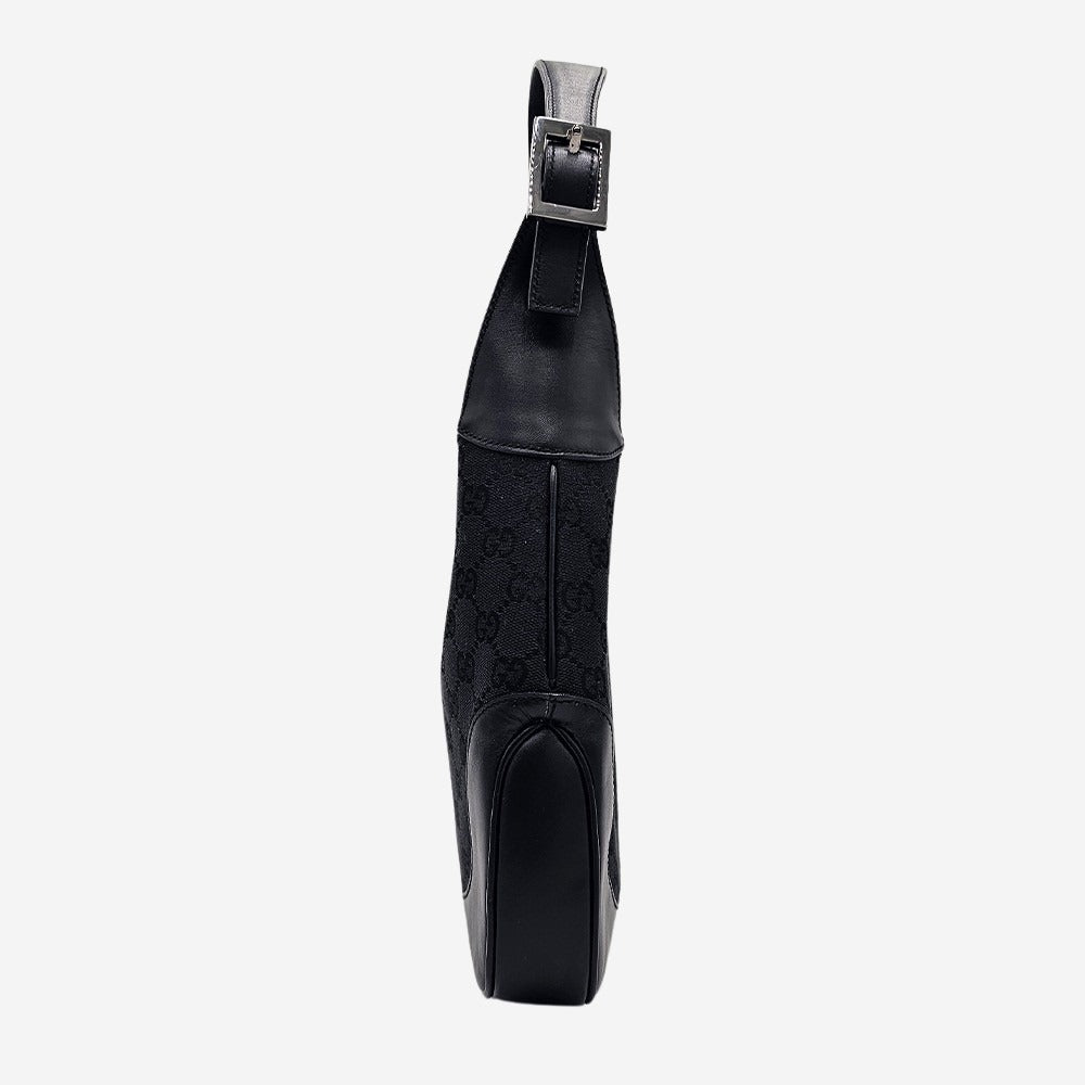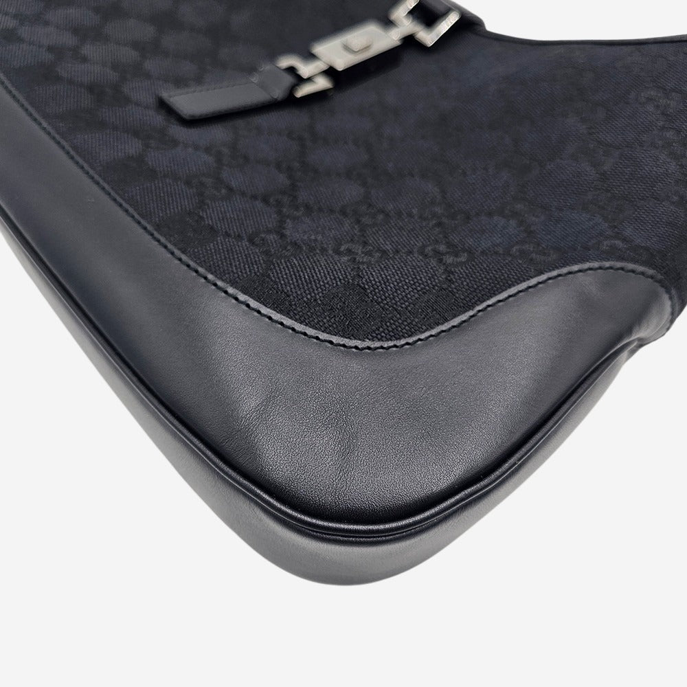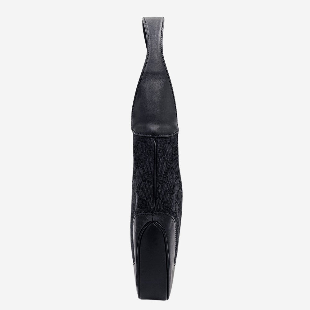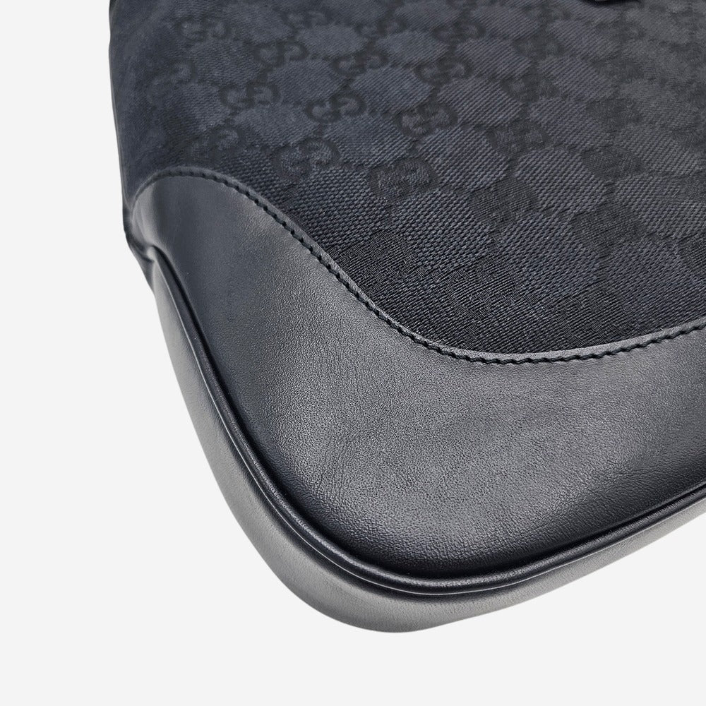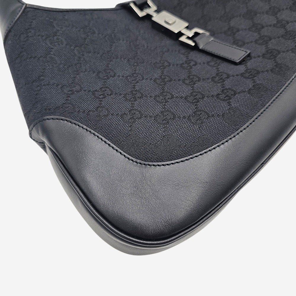 Jackie tasken blev introduceret af Gucci i 1961. Siden har tasken opnået sin popularitet og slået sit navn fast i modeverdenen med hjælp fra Jacqueline Kennedy Onassis. Hun blev ofte spottet med tasken og den blev derfor hurtigt kendt som hendes yndlingstaske. Efterfølgende fik den sit nye navn efter hende. Jackie er gennem tiden blevet designet i et utal af farver samt materialer og fås stadig hos Gucci den dag i dag. Denne skønne Jackie er fremstillet i sort canvas med sorte læder detaljer. Den rummer alle dine hverdagsfornødenheder plus det ekstra såsom telefon, pung, nøgler, solbriller, vandflaske mm. Tasken har yderligere en indvendig lynlåslomme.