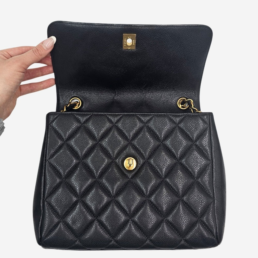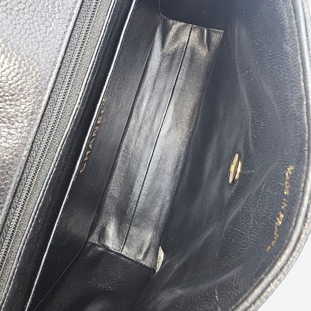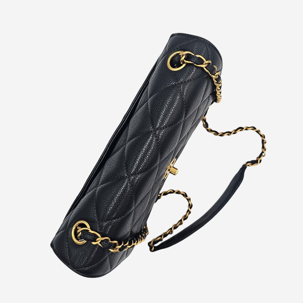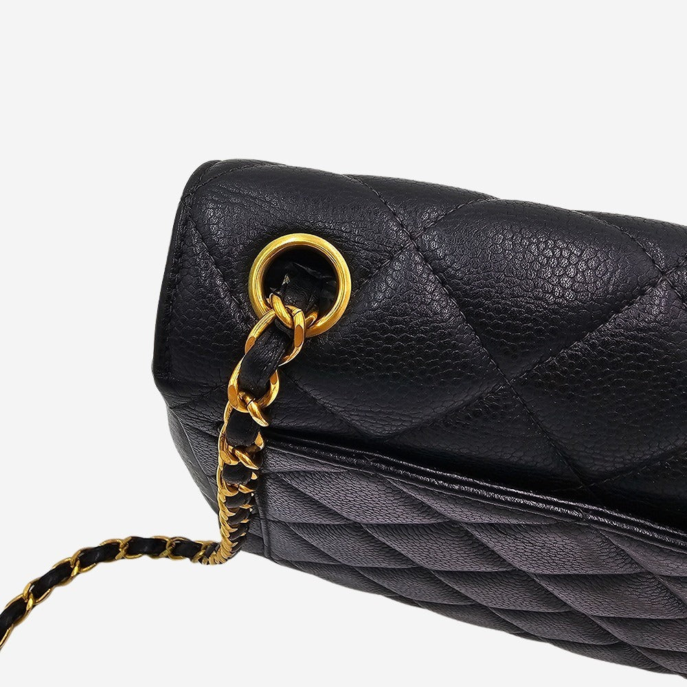 Denne smukke taske fra Chanel, er fremstillet i det smukke og slidstærke caviarskind og med 24 karat guldbelagt hardware. Tasken falder behageligt på skulderen takket være det ekstra læderstykke på kæden og kan bruges både som skulder samt crossbody taske. Den kan indeholde alle dine hverdagsfornødenheder såsom telefon, pung, solbriller/briller, nøgler mm. Foruden hovedrummet har tasken desuden en indvendig lynlåslomme samt en indvendig og udvendig sliplomme. Perfekt og tidløs hverdagstaske.