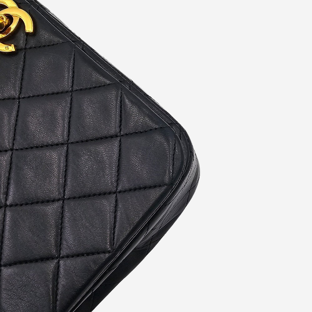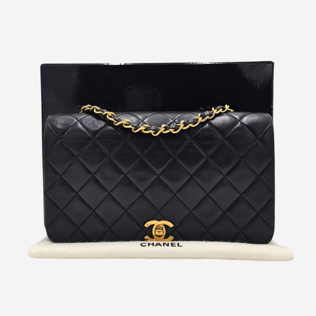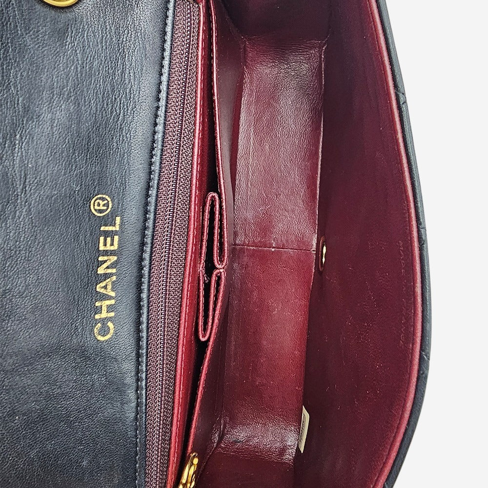 Denne meget smukke og unikke vintage flap bag er helt tilbage fra serienummerets spæde start. Den er fremstillet i utroligt slidstærkt læder med ægte 24 karat guldbelagt hardware, og det klassiske bordeaux røde læderinteriør. Taskens hovedrum kan indeholde pung, telefon, solbriller samt nøgler. Derudover har den yderligere 1 indvendig lynlåslomme samt 3 små sliplommer. Den perfekte crossbodytaske til både hverdag og fest.