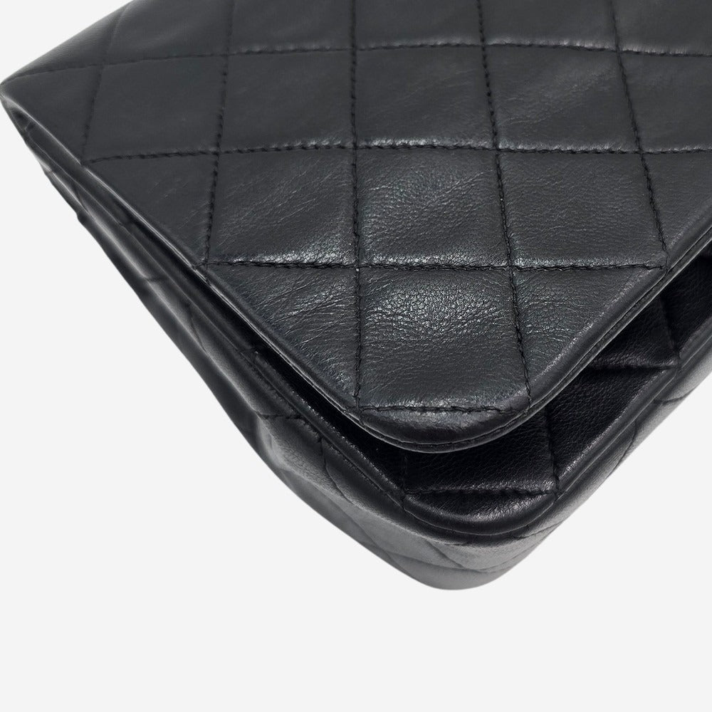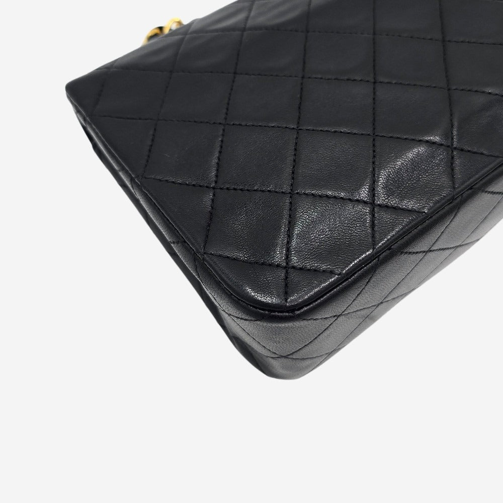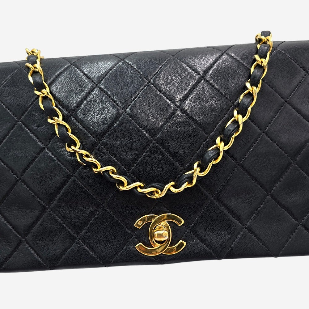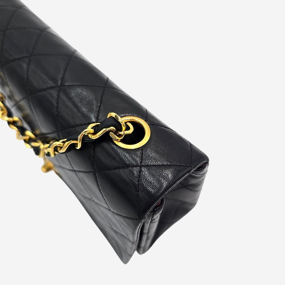 Denne meget smukke og unikke vintage flap er helt tilbage fra serienummerets spæde start. Den er fremstillet i utroligt slidstærkt lammeskind, 24 karat guldbelagt hardware og med det klassiske bordeaux læderinteriør. Taskens hovedrum kan indeholde pung, telefon, solbriller samt nøgler. Derudover har den yderligere 1 indvendig lynlåslomme samt 3 små sliplommer. Den perfekte crossbodytaske til både hverdag og fest.